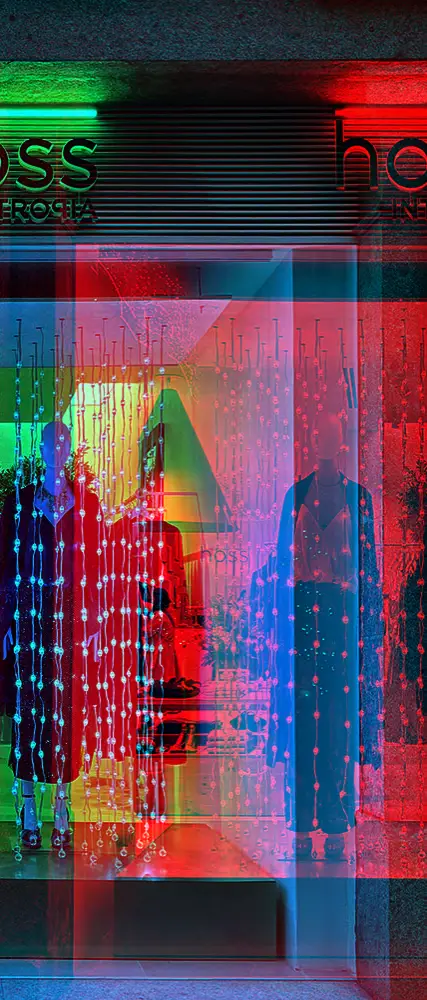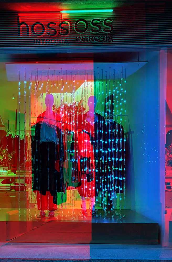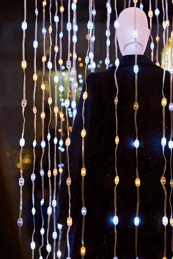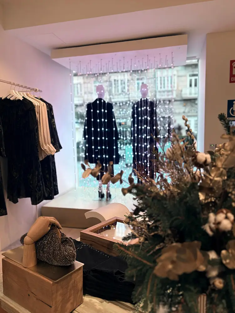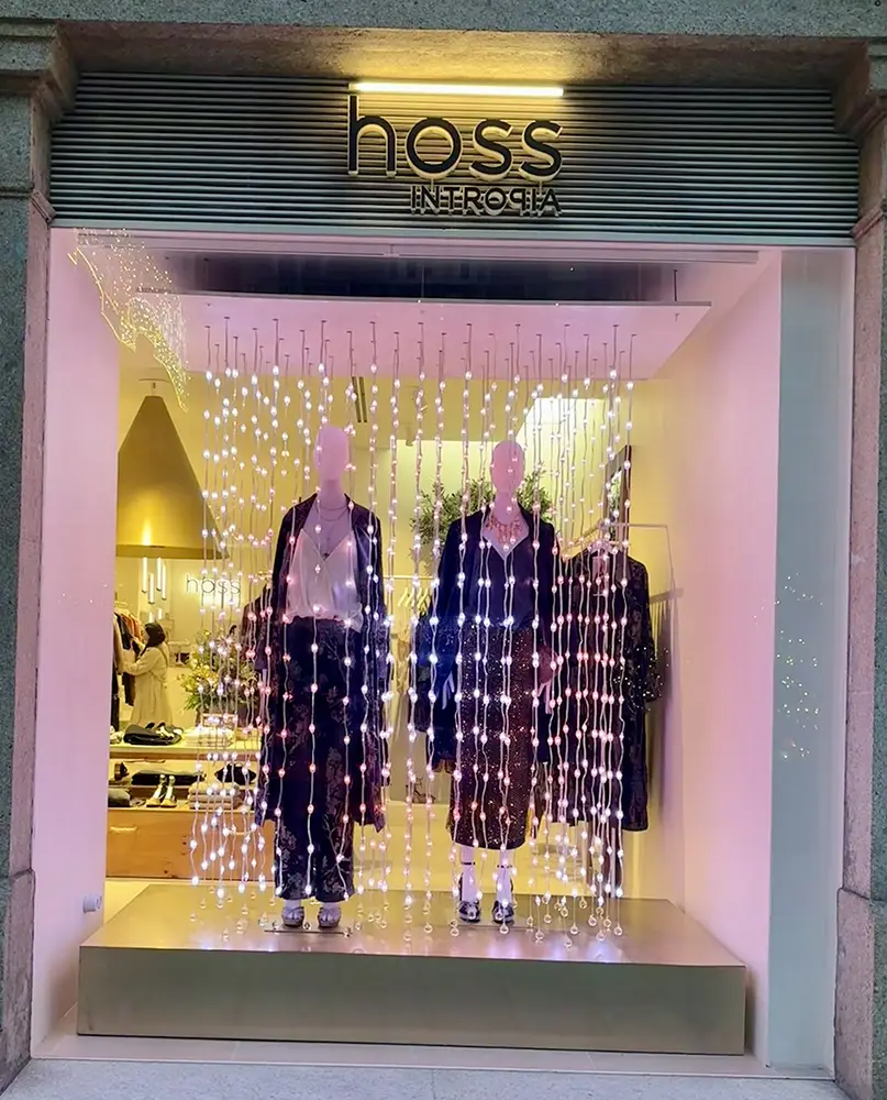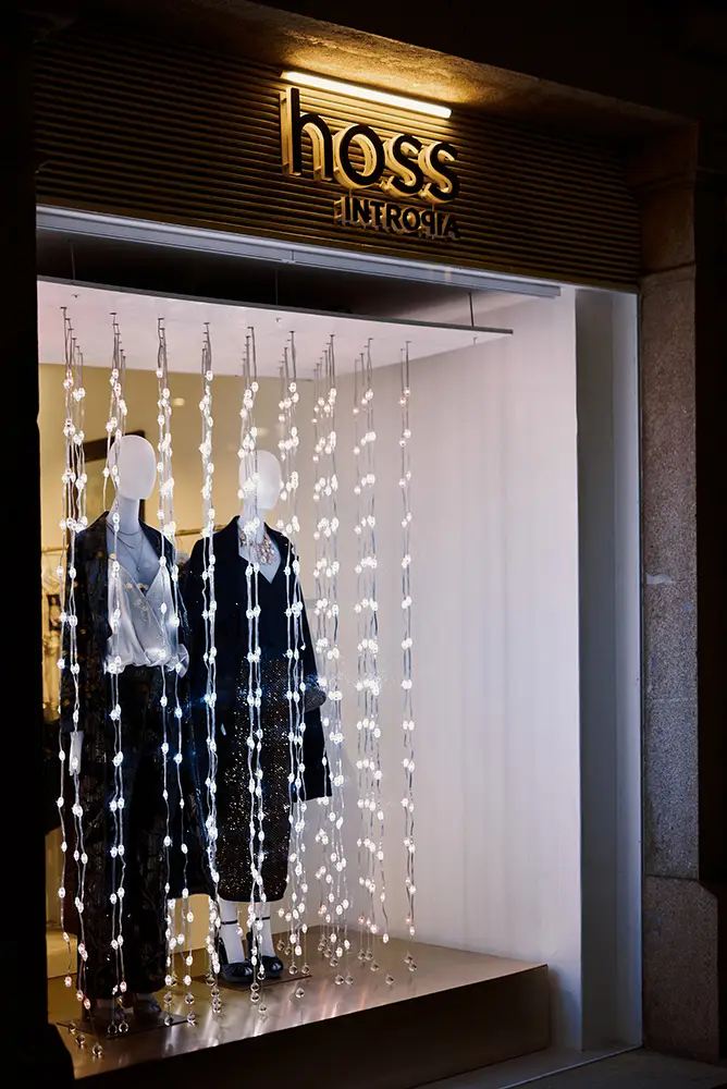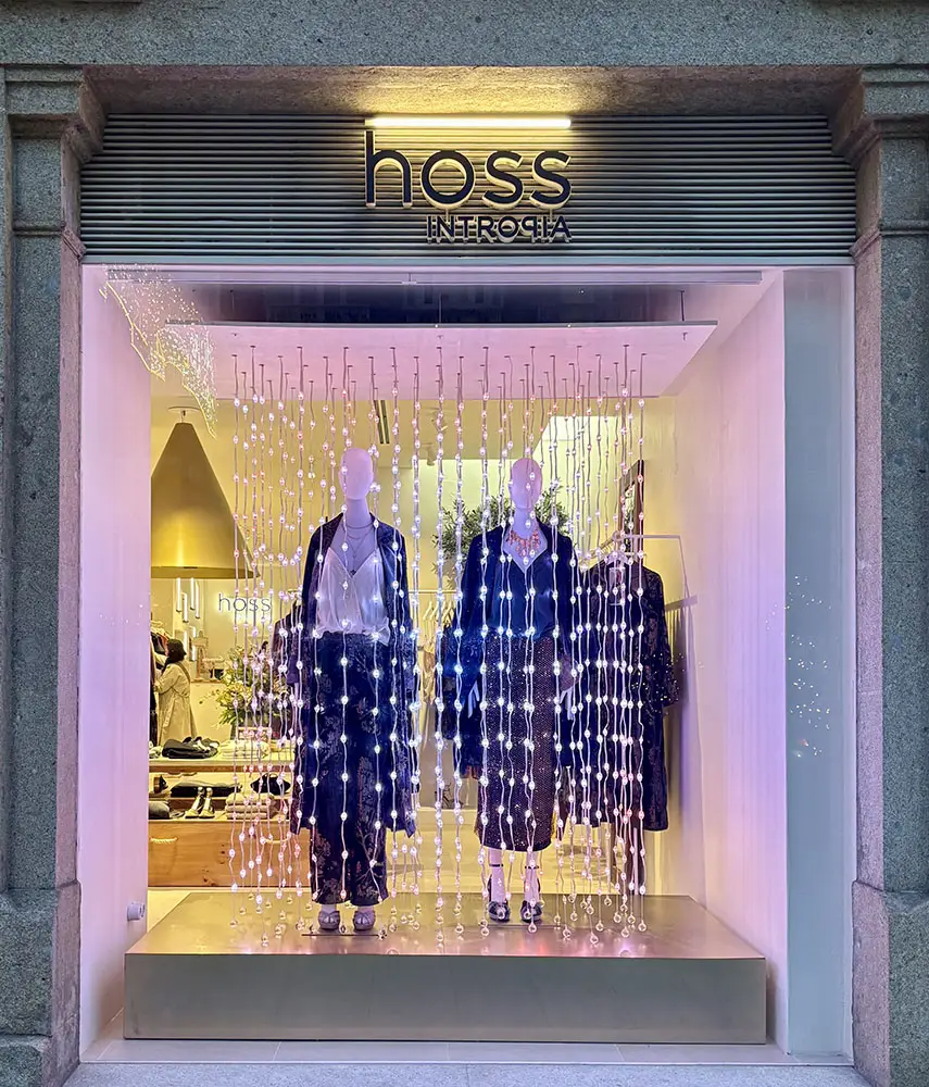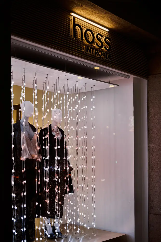 Además, para vestir el escaparate de esta temporada tan especial, contamos con la colaboración de Vitamin Studio, un estudio creativo que fusiona arte, diseño y tecnología para dar vida a experiencias visuales únicas. Conocidos por sus instalaciones inmersivas y escenografías llenas de luz, color y movimiento, han creado para Hoss Intropia una propuesta mágica que rinde homenaje a la ciudad de Vigo, tan reconocida por su espectacular iluminación navideña.