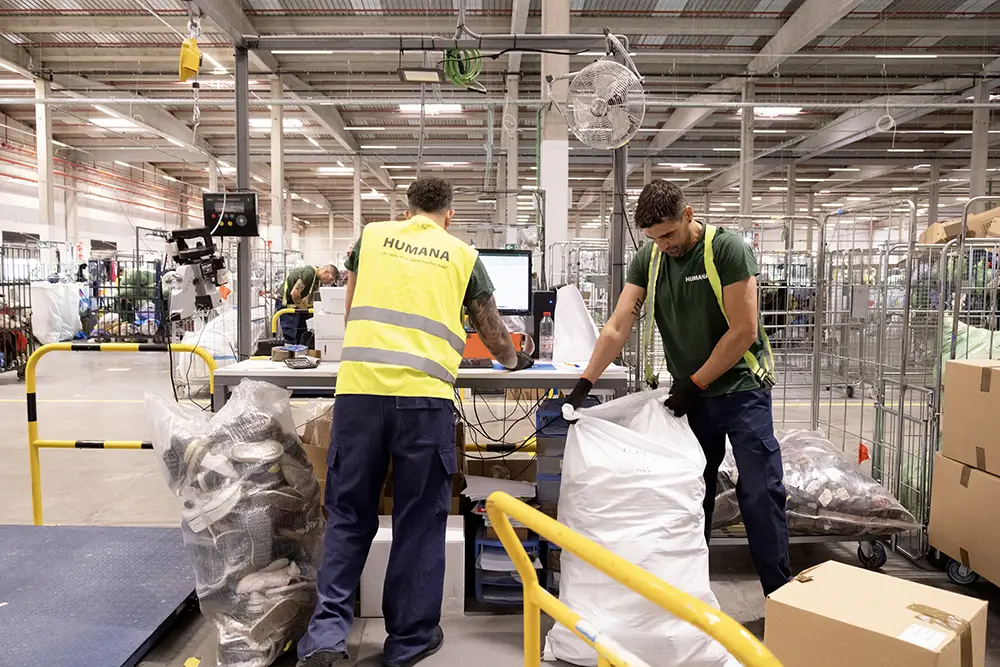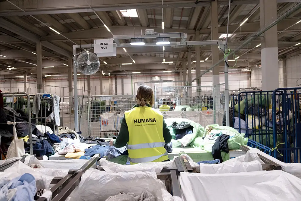 Los ámbitos de actividad en los que se basa la generación de empleo en Humana son principalmente dos: el área de clasificación del residuo textil recogido (la entidad cuenta con dos plantas de preparación para la reutilización; el pasado mes de septiembre estrenó la planta de Leganés, uno de los centros de clasificación de ropa y calzado de segunda mano más grandes de España) y la red de tiendas.