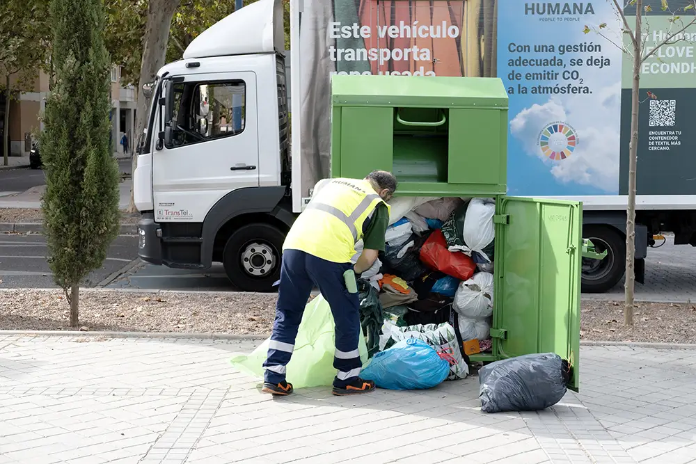 El residuo textil (ropa, calzado, complementos y textil del hogar que ya no se utilizan) se deposita en los 5.000 contenedores ubicados en lugares de fácil acceso, que se vacían periódicamente (entre una y dos veces por semana, incluso tres si es temporada alta) para garantizar un buen servicio. Humana lo clasifica en sus plantas de Leganés (Madrid) y l’Ametlla del Vallès (Barcelona), bajo los principios de la jerarquía de residuos.