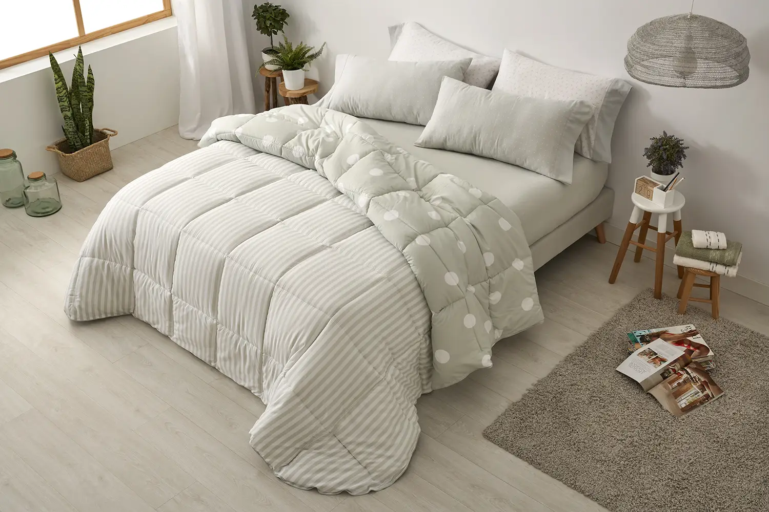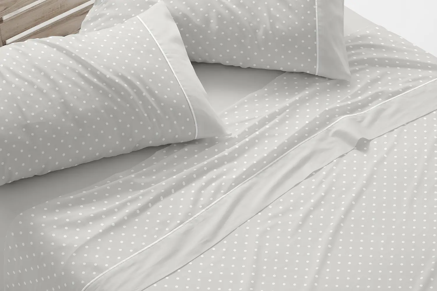 Burrito Blanco incorpora de forma libre este motivo en sus diversas colecciones para la temporada otoño invierno 2025 – 2026. Sábanas de invierno, sábanas de primavera, fundas nórdicas y edredones. Puntos y más puntos en tamaños y colores diversos para dar luminosidad, frescura y alegría.