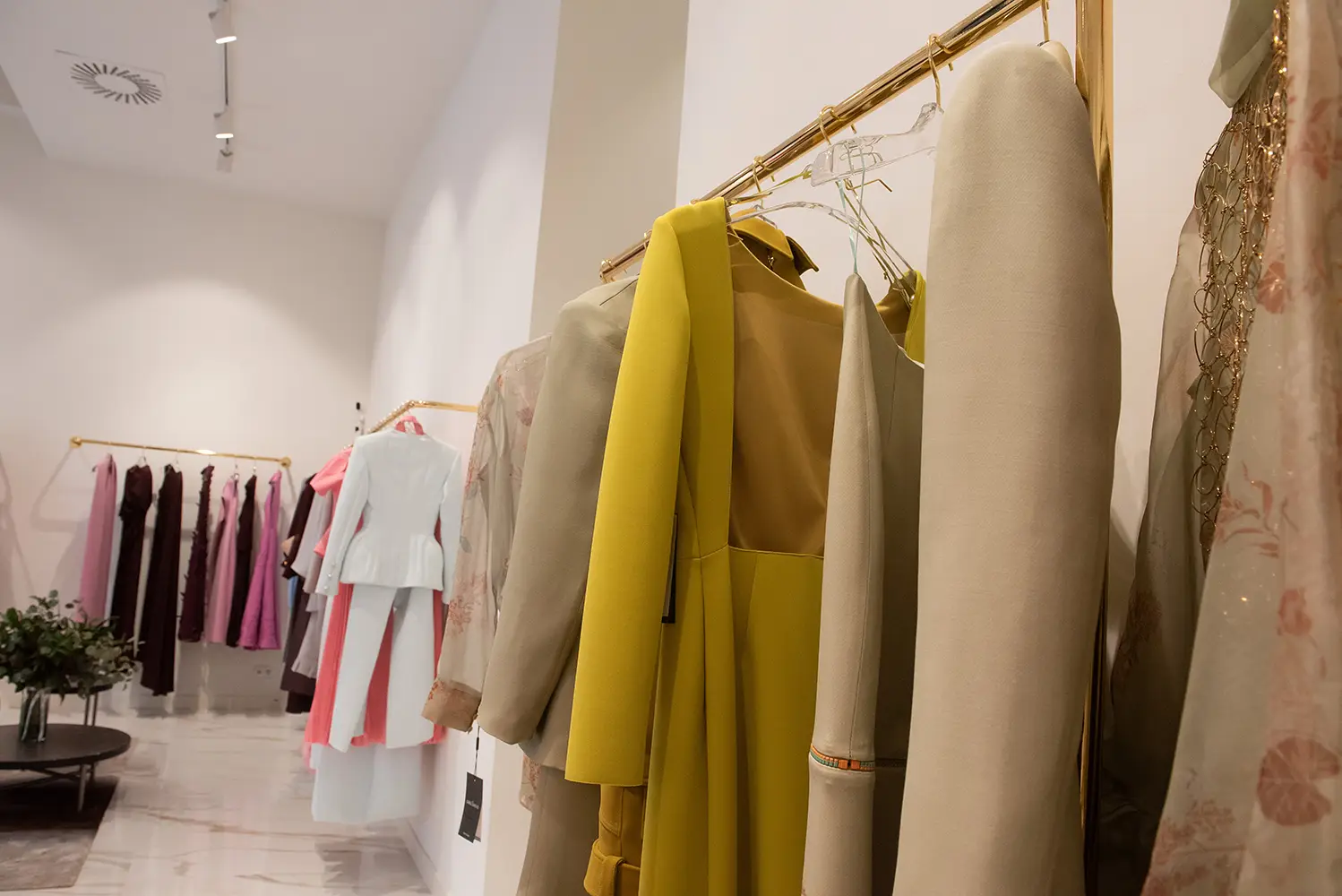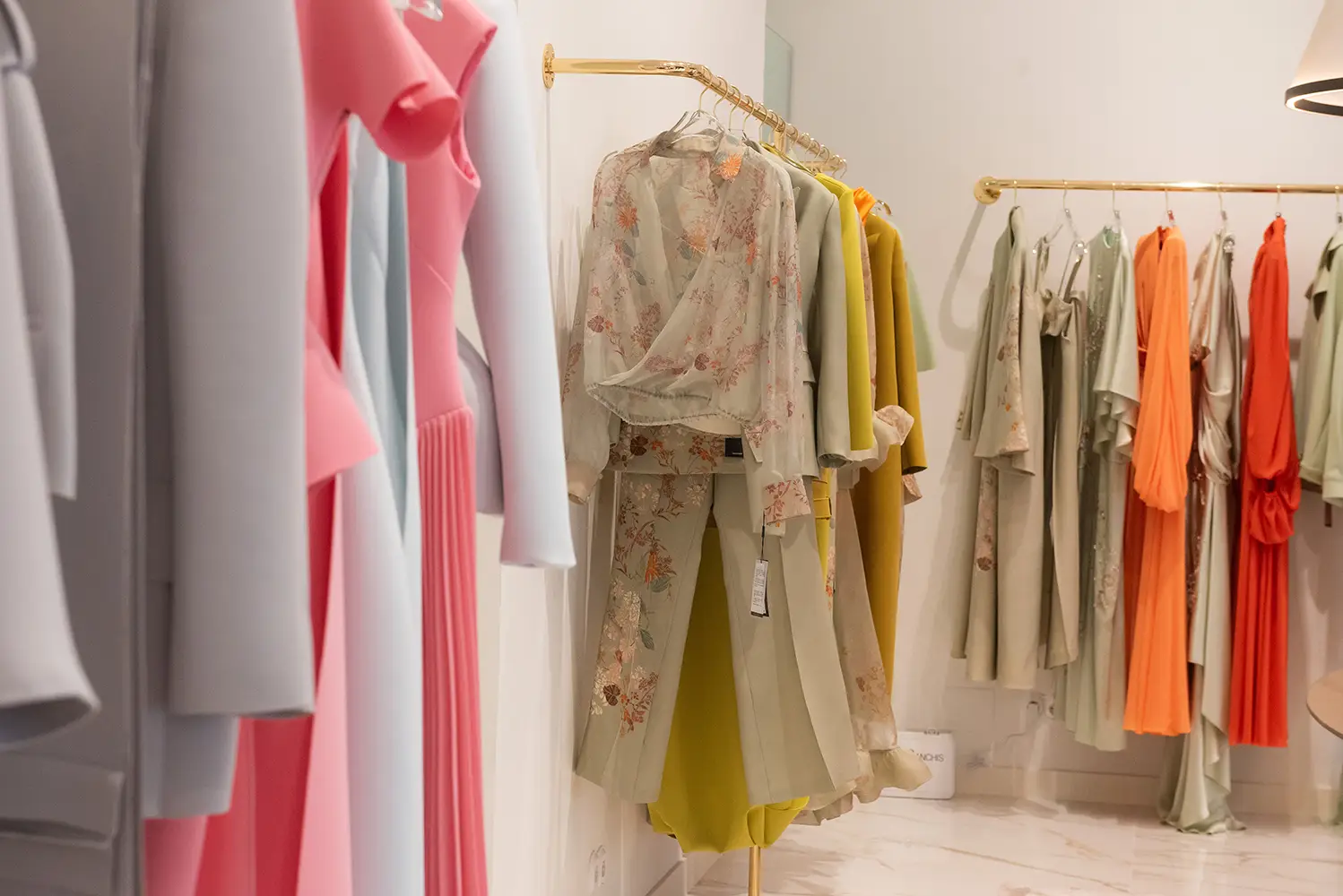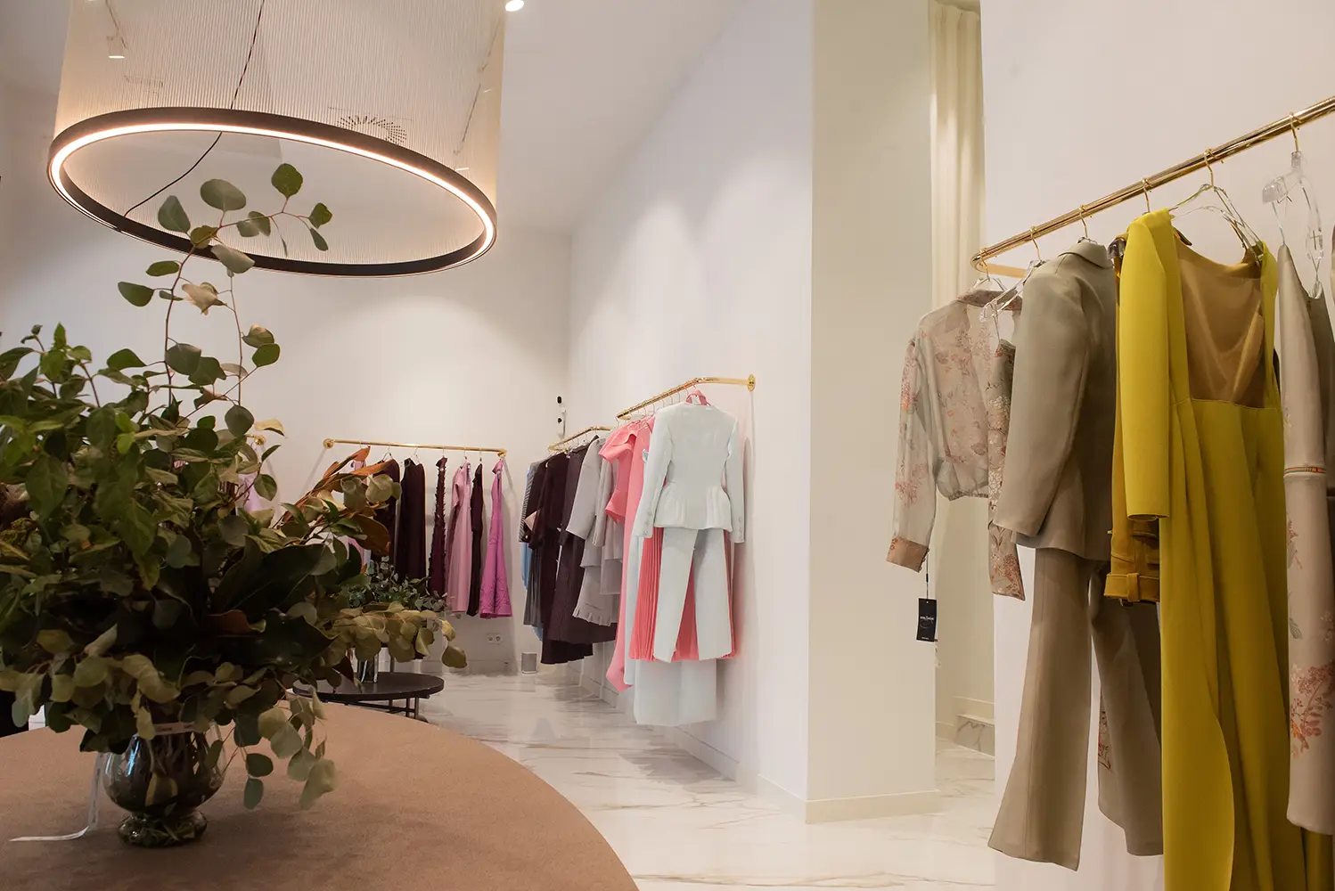 La boutique ofrece una experiencia coherente con el ADN de Isabel Sanchis, donde conviven sus colecciones de prêt-à-porter, costura, novia y alta moda en un entorno elegante, amplio y luminoso. Cada detalle del espacio ha sido concebido para acompañar y realzar las piezas, sin restarles protagonismo.