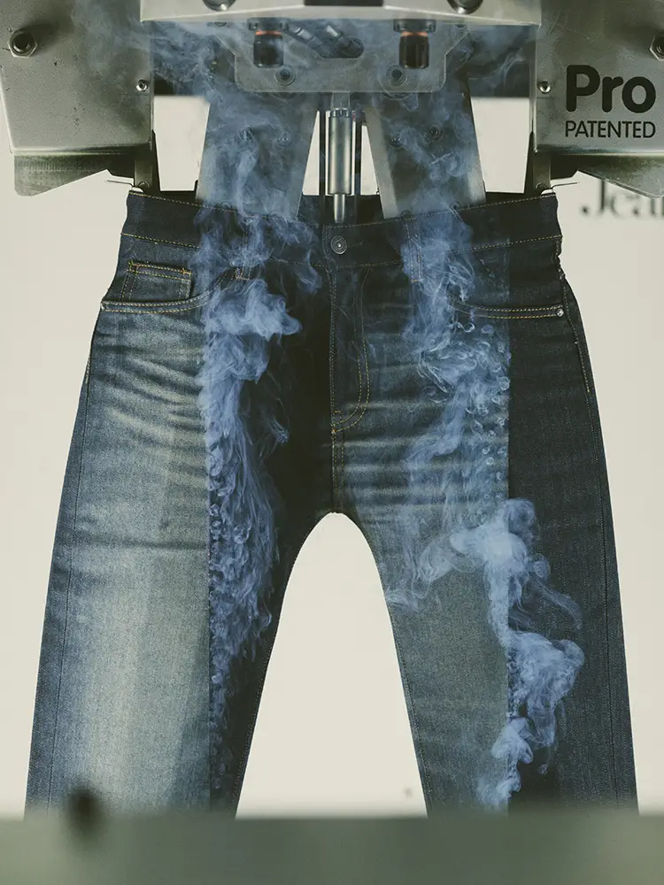 - Láser, que da vida a paisajes y texturas naturales con diseños hiperrealistas y únicos. Esta tecnología ha transformado para siempre la forma de diseñar y producir denim, eliminando el trabajo manual y ofreciendo infinitas posibilidades creativas. Hoy permite reproducir efectos vintage, texturas 3D, desgastes o diseños vectoriales con precisión, velocidad y consistencia, digitalizando todo el proceso de diseño y garantizando creatividad, calidad y eficiencia.