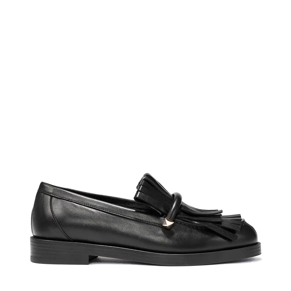 En accesorios, la familia de bolsos BAR se expande: sus detalles metálicos se trasladan para dar vida al ESKA LOAFER, con flecos de cuero audaces en negro o burdeos intenso. El BAR HOLDALL, un bolso práctico para el día disponible en dos tamaños, se presenta en cuero negro craquelado con un matiz de toffee, azul laguna o burdeos intenso; mientras tanto, el BAR HOBO se realza con flecos alargados, subrayando el movimiento y la energía que caracteriza a todas las propuestas de esta temporada.