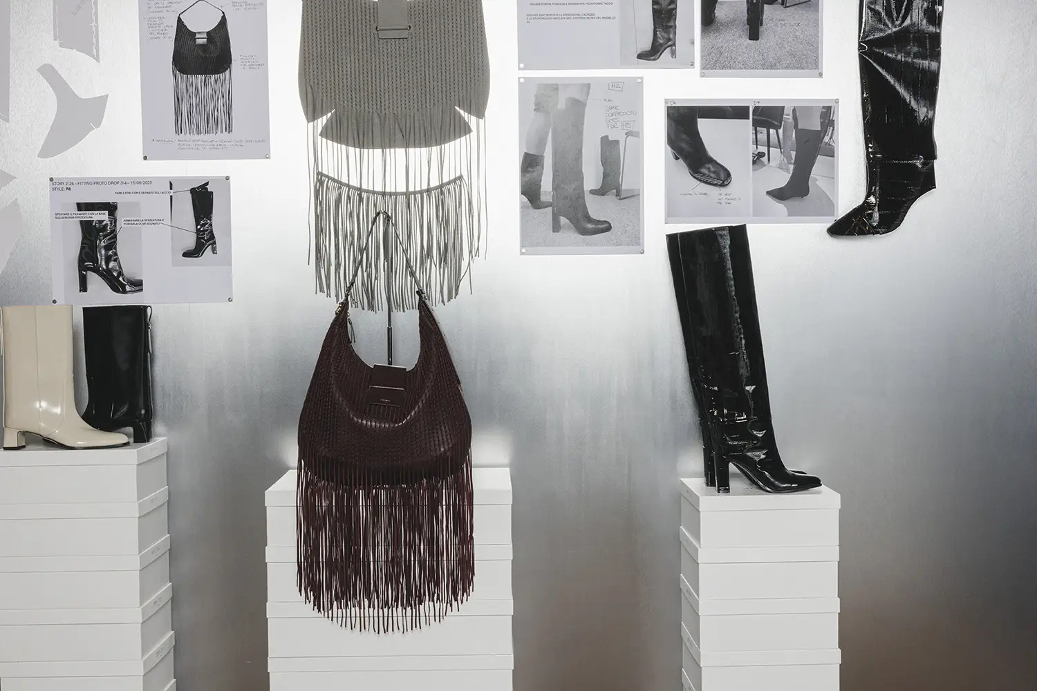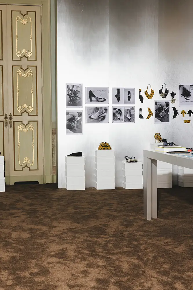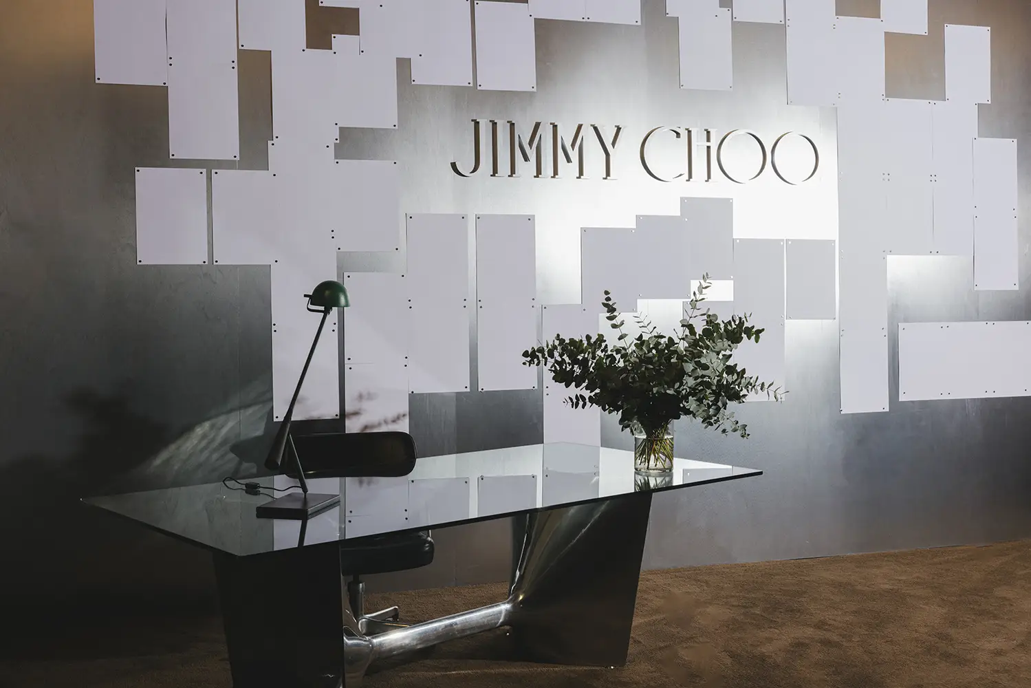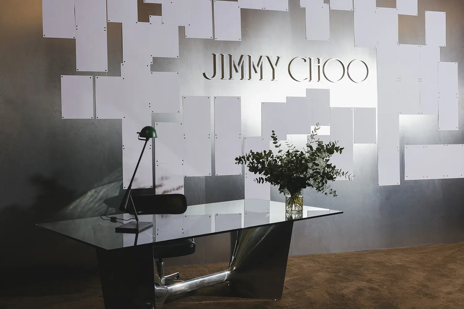 La colección se presentó durante la Semana de la Moda de Milán en un escenario de múltiples salas que era una interpretación del estudio de diseño de Sandra Choi en Londres. Habiendo supervisado el diseño desde que la marca se estableció en 1996, el espacio representaba de manera intencional la narrativa de lo que ocurre detrás de escena en la creación de una colección, en la creación de Jimmy Choo.