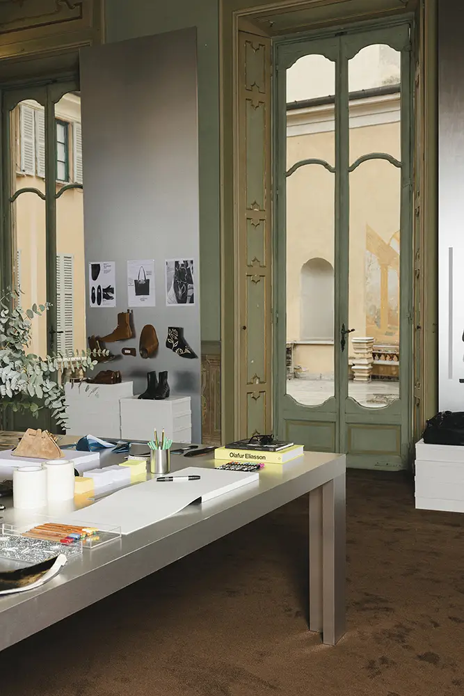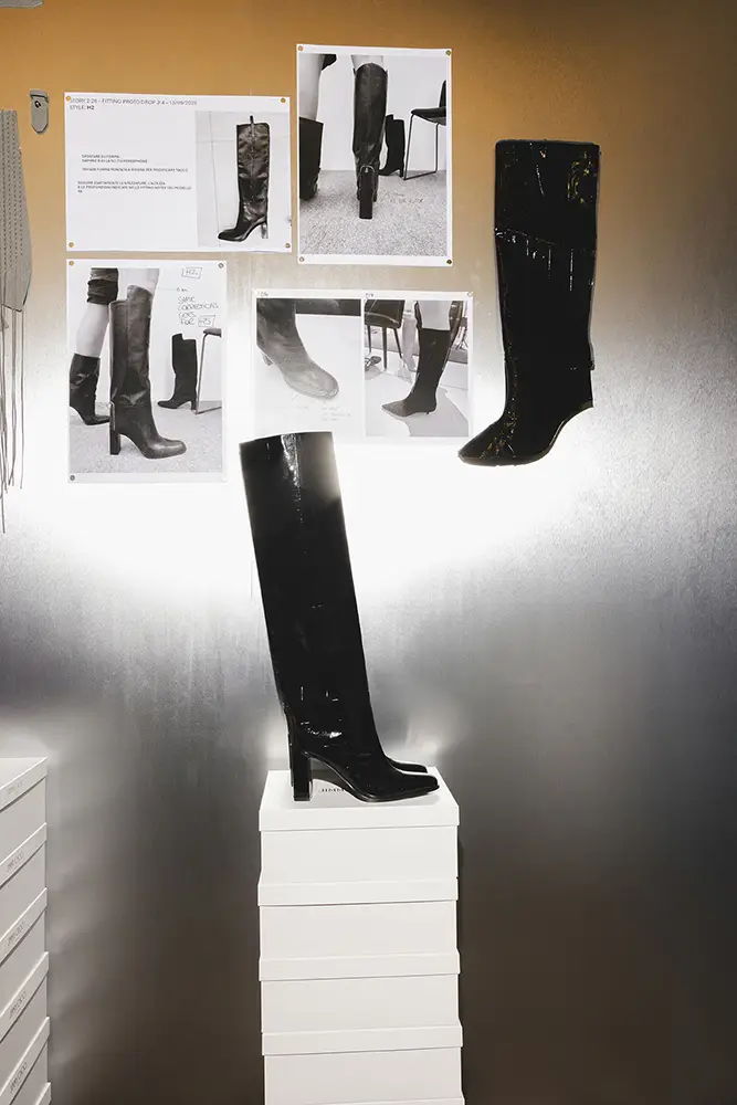 “Comencé con una intención muy precisa; me atrajo la idea de vestir la pierna, de extender nuestro lienzo. Las botas son el foco de esta colección; me encanta la energía juvenil y segura que aportan a las mujeres, son prácticas, pero también transformadoras. Y quería trasladar ese espíritu al resto de la colección. Es una visión asertiva del glamour inspirada en nuestro legado.” – Sandra Choi.