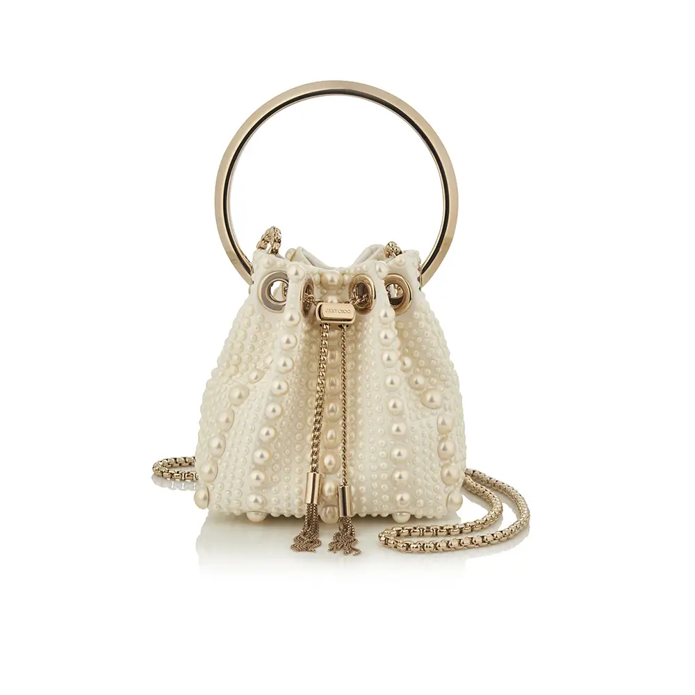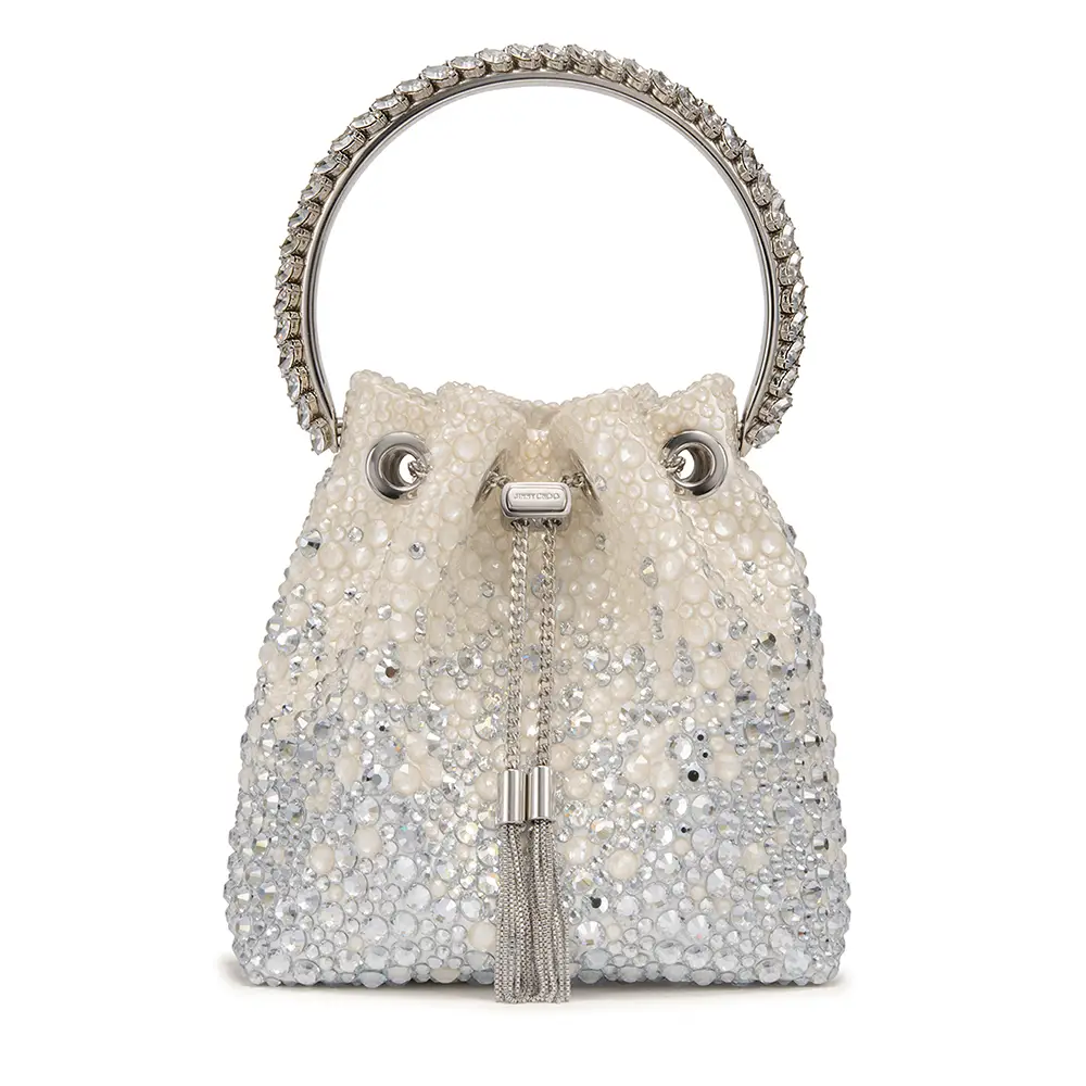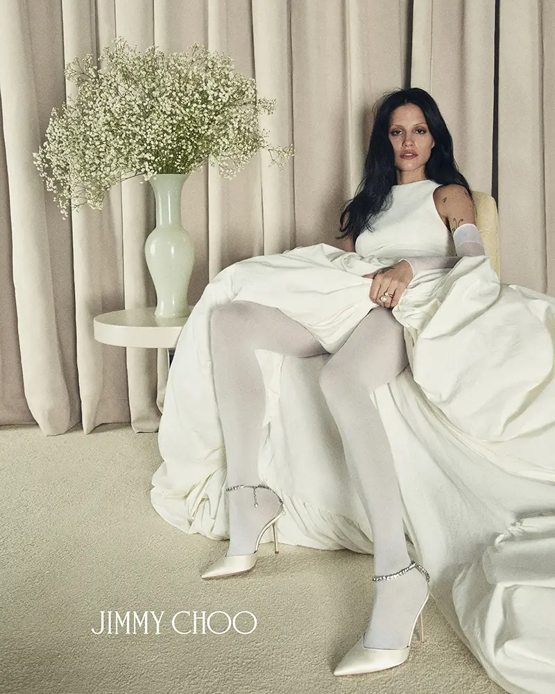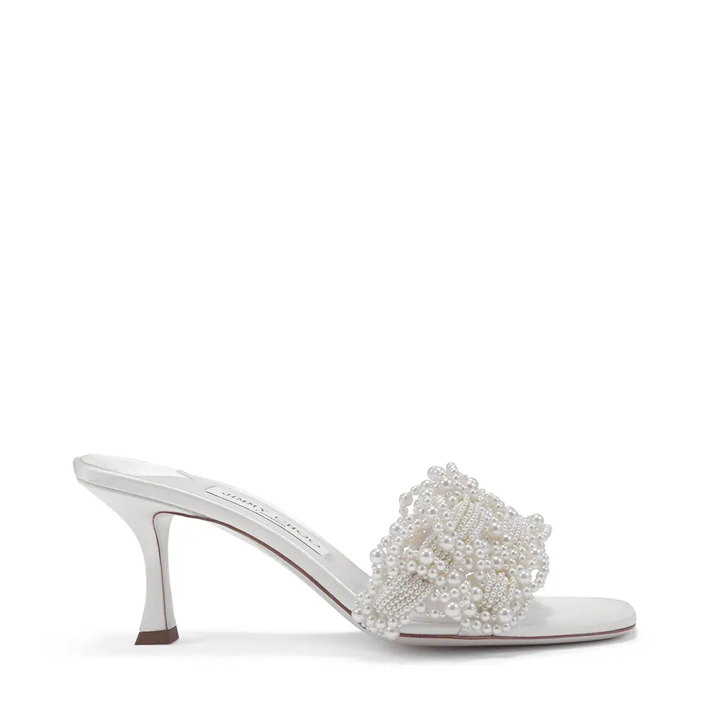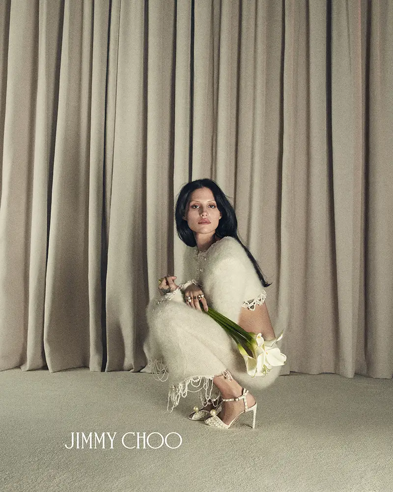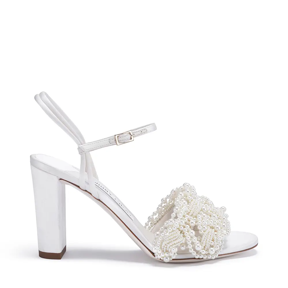 Símbolos de pureza, amor y nuevos comienzos, las perlas han sido durante mucho tiempo sinónimo de Jimmy Choo, especialmente en la Colección Nupcial. El modelo SACORA es una sandalia llamativa adornada con aproximadamente 1.969 detalles de perlas, mientras que el modelo AURELIE fusiona detalles de perlas y cristales con románticos encajes. También se incluyen los modelos emblemáticos de la casa, como los zapatos de salón SAEDA, que se caracterizan por una elegante tobillera, y el modelo AZIA, completamente adornado con aproximadamente 5.453 piedras.