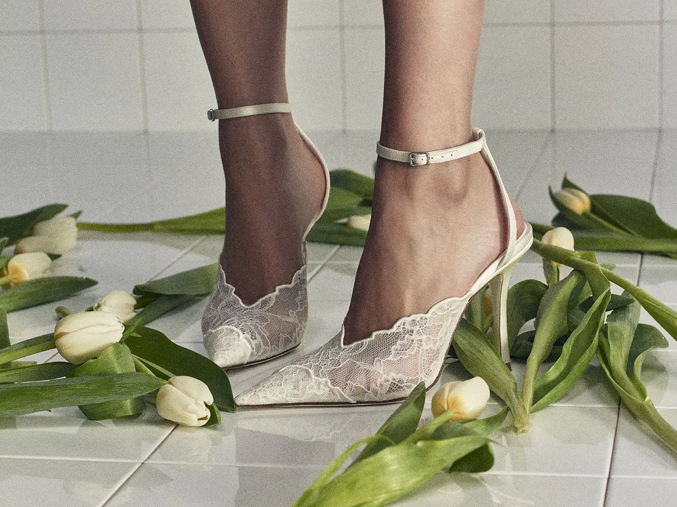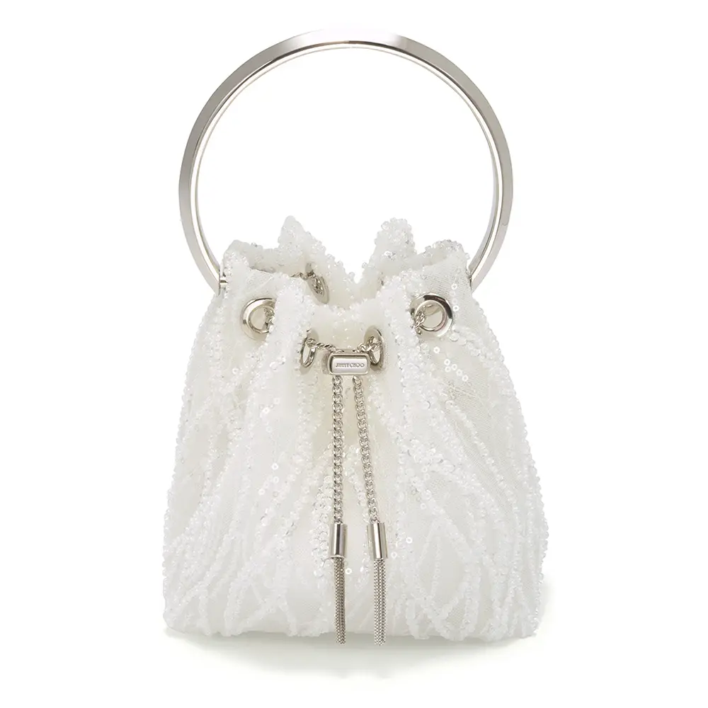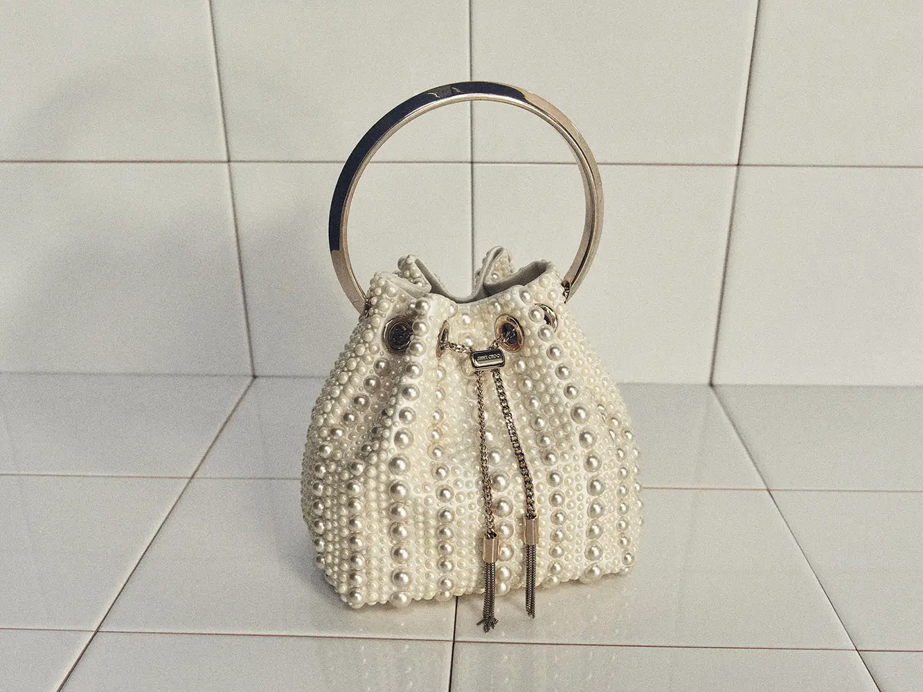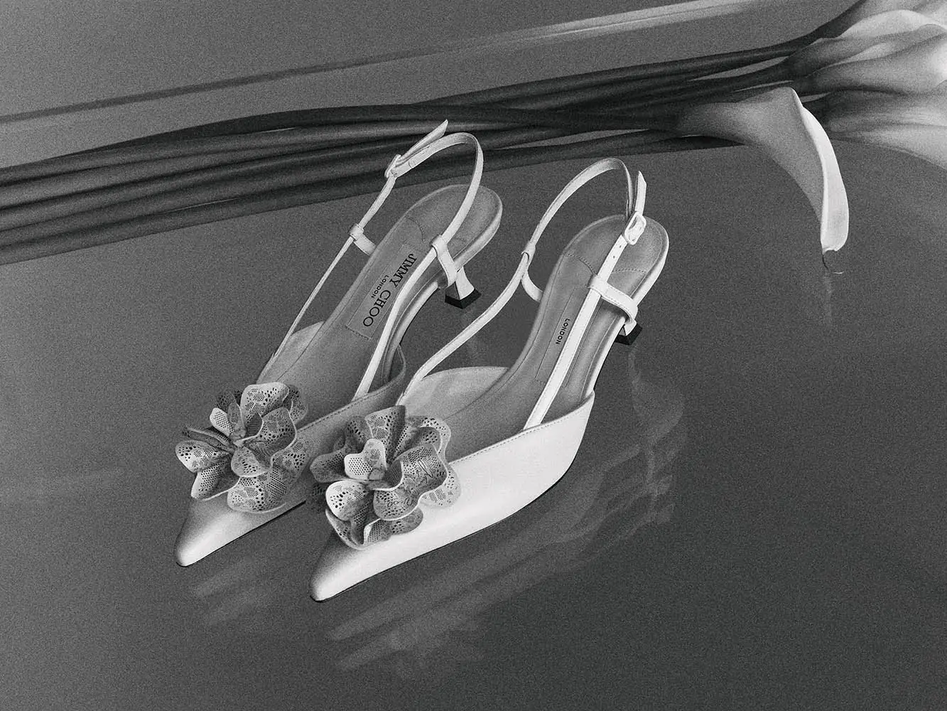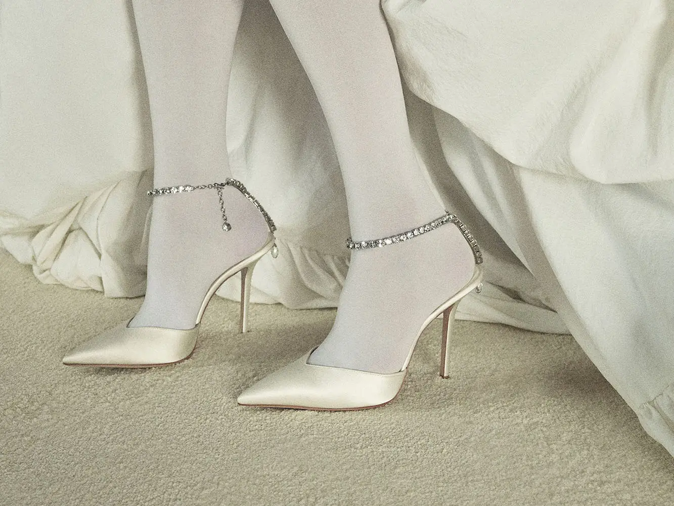 Símbolos de pureza, amor y nuevos comienzos, las perlas han sido durante mucho tiempo sinónimo de Jimmy Choo, especialmente en la Colección Nupcial. El modelo SACORA es una sandalia llamativa adornada con aproximadamente 1.969 detalles de perlas, mientras que el modelo AURELIE fusiona detalles de perlas y cristales con románticos encajes. También se incluyen los modelos emblemáticos de la casa, como los zapatos de salón SAEDA, que se caracterizan por una elegante tobillera, y el modelo AZIA, completamente adornado con aproximadamente 5.453 piedras.