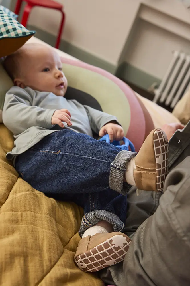 Su diseño sin suela permite que los pies se muevan con libertad absoluta, favoreciendo la estimulación sensorial y el fortalecimiento natural de la musculatura. El sistema de cordón, pensado para ajustarse sin oprimir, asegura que permanezcan en su sitio incluso en medio de las exploraciones más entusiastas. Fabricados en tejidos suaves y transpirables, ofrecen un confort constante que acompaña al niño desde sus primeros juegos sobre el suelo hasta el momento de descansar.