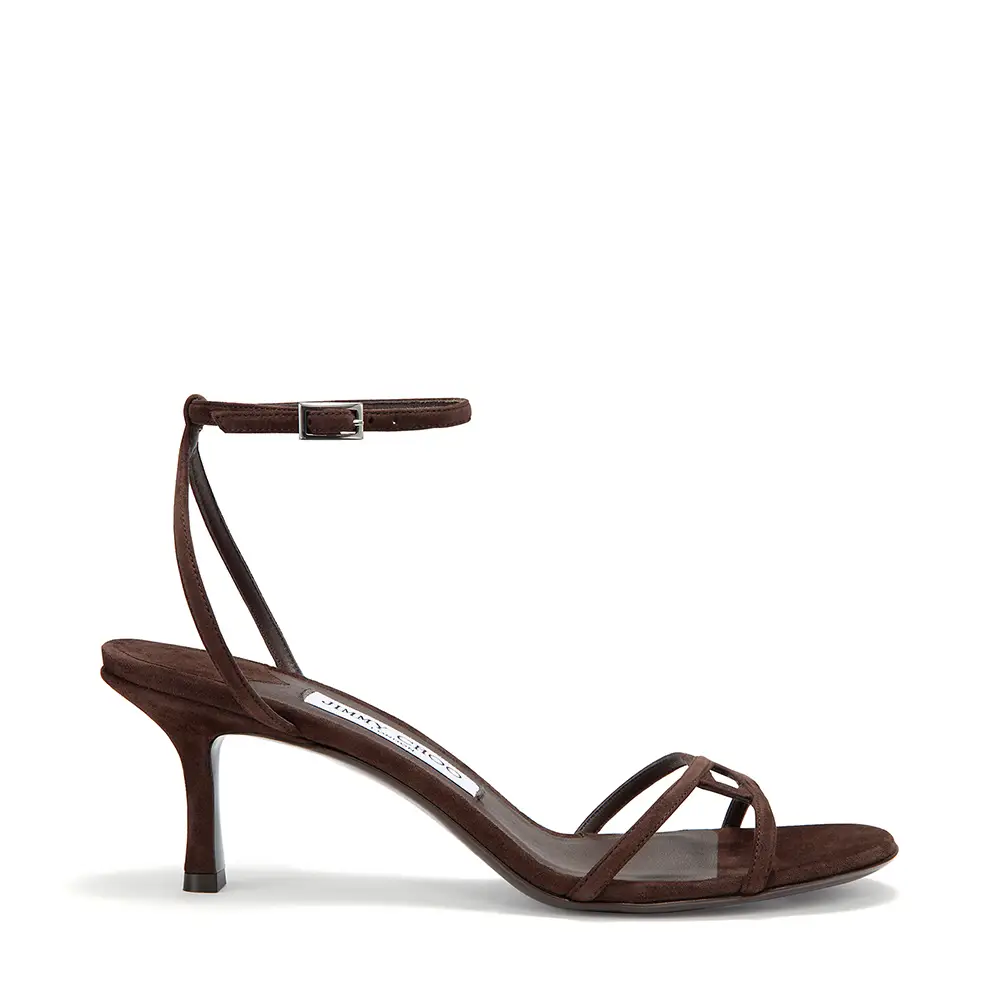 La sandalia de tiras es, por supuesto, un icono de Jimmy Choo que se presentó en sus primeras colecciones – referencia directa de la pieza de archivo LEO de 1998, que ahora es reinterpretada con estampado de serpiente sobre piel metálica de color oro; mientras que los zapatos planos AYLA, un estilo arquetípico del verano y esencial de cualquier fondo de armario, se presenta en ante color chocolate.
