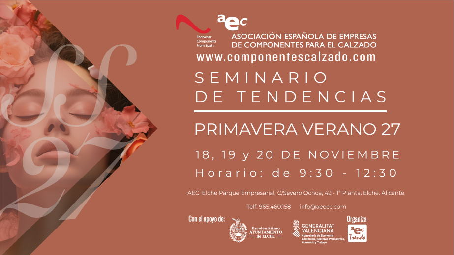 La Asociación Española de Componentes para el Calzado (AEC) pone en marcha una nueva edición de sus esperados Seminarios de Tendencias de Moda, una cita clave para los profesionales del sector que desean anticipar los cambios creativos, materiales y estéticos que dominarán la industria en la temporada Primavera-Verano 2027. La iniciativa, de carácter exclusivo para empresas asociadas, se celebrará los días 18, 19 y 20 de noviembre en la sede social de la AEC, consolidándose como uno de los espacios formativos de referencia para el ecosistema del calzado y los componentes.