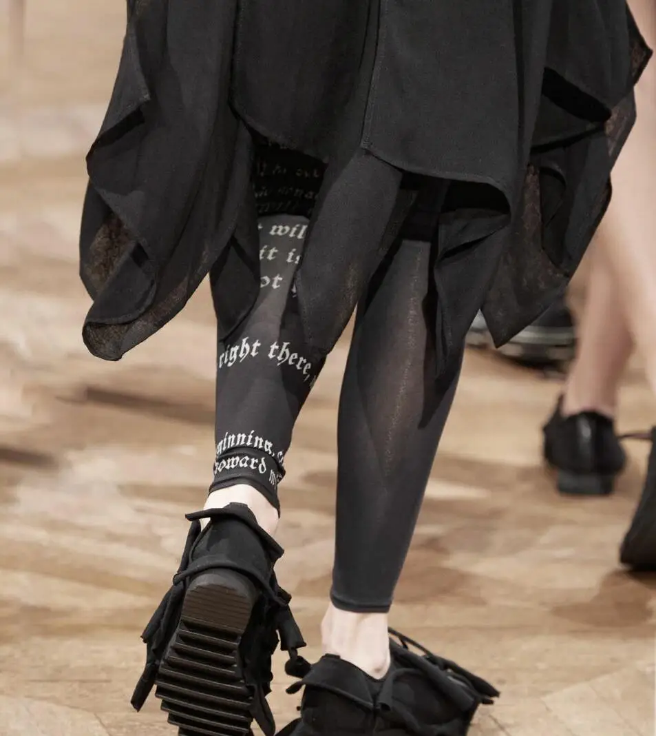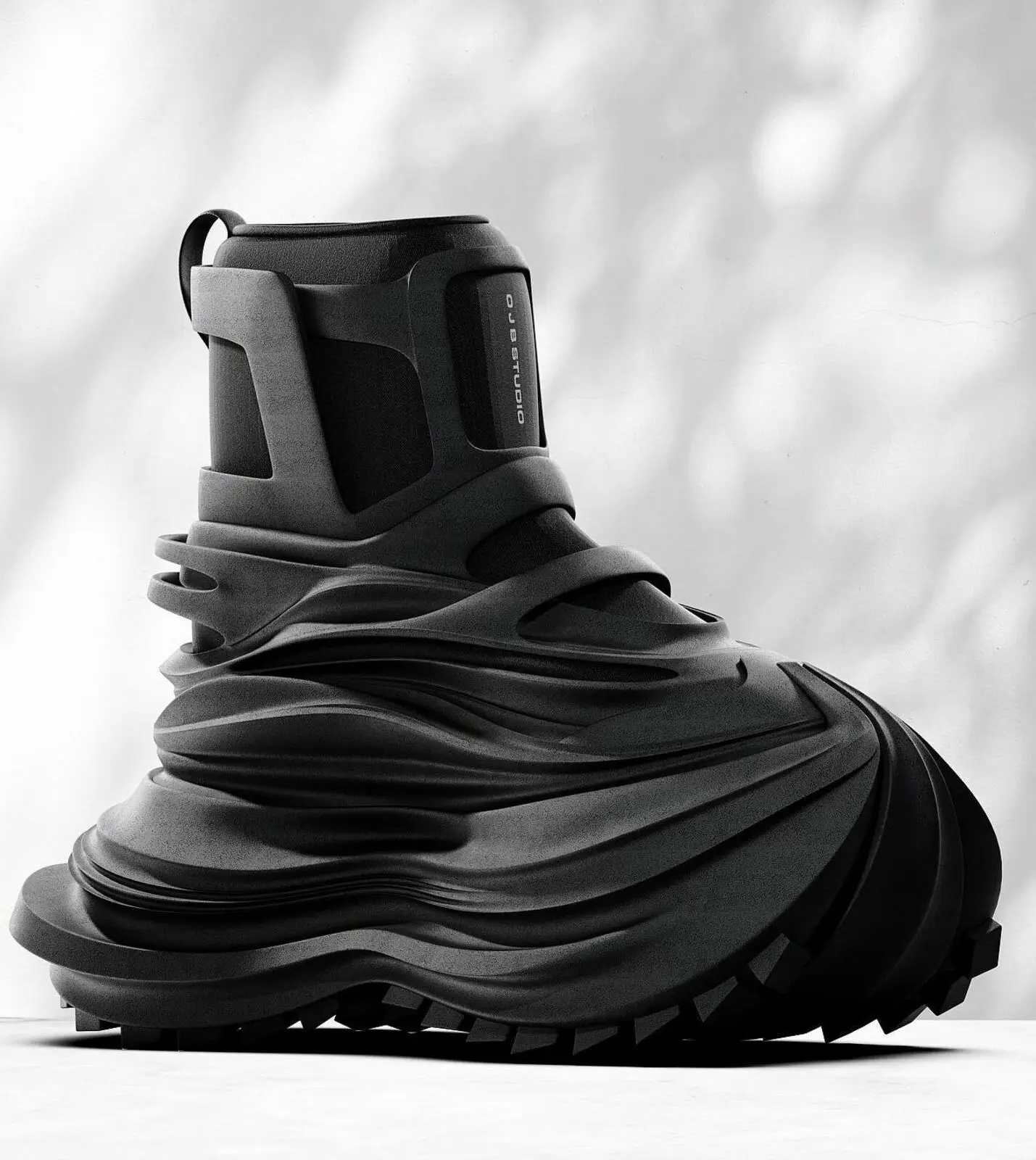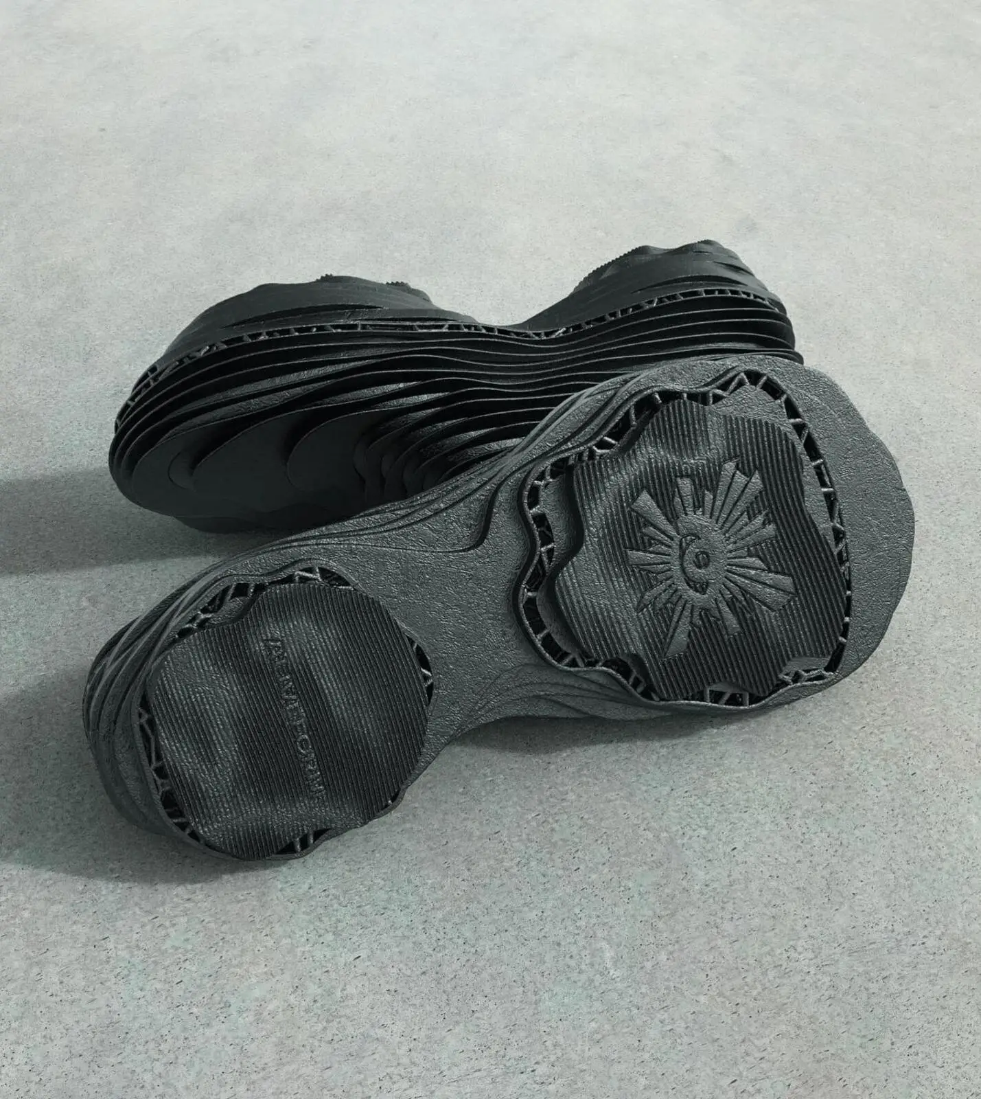 Las siluetas se depuran, con superficies de micro relieves, elevaciones de volumen controlado, biomorfismos y recortes estructurales. Las suelas 3D incorporan geometrías huecas, sistemas de agarre integrados y piezas arquitectónicas como cages o contrafuertes visibles. La tecnología deja de ser exhibicionista para convertirse en un “lujo silencioso”.