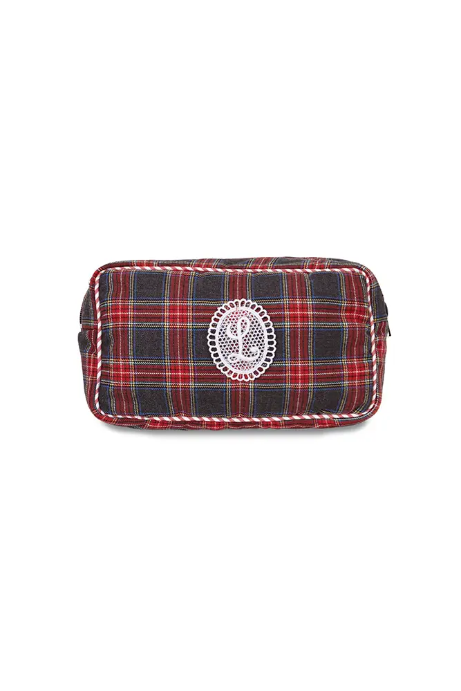 La propuesta consiste en un neceser sofisticado y funcional de estampado tartán, con el interior meticulosamente forrado y el exterior acabado con el vivo a contraste. Ambos emblemas de las marcas están presentes bordados para darle la pincelada ideal: la L de LAGANINI y la flor característica de SISLEY.
