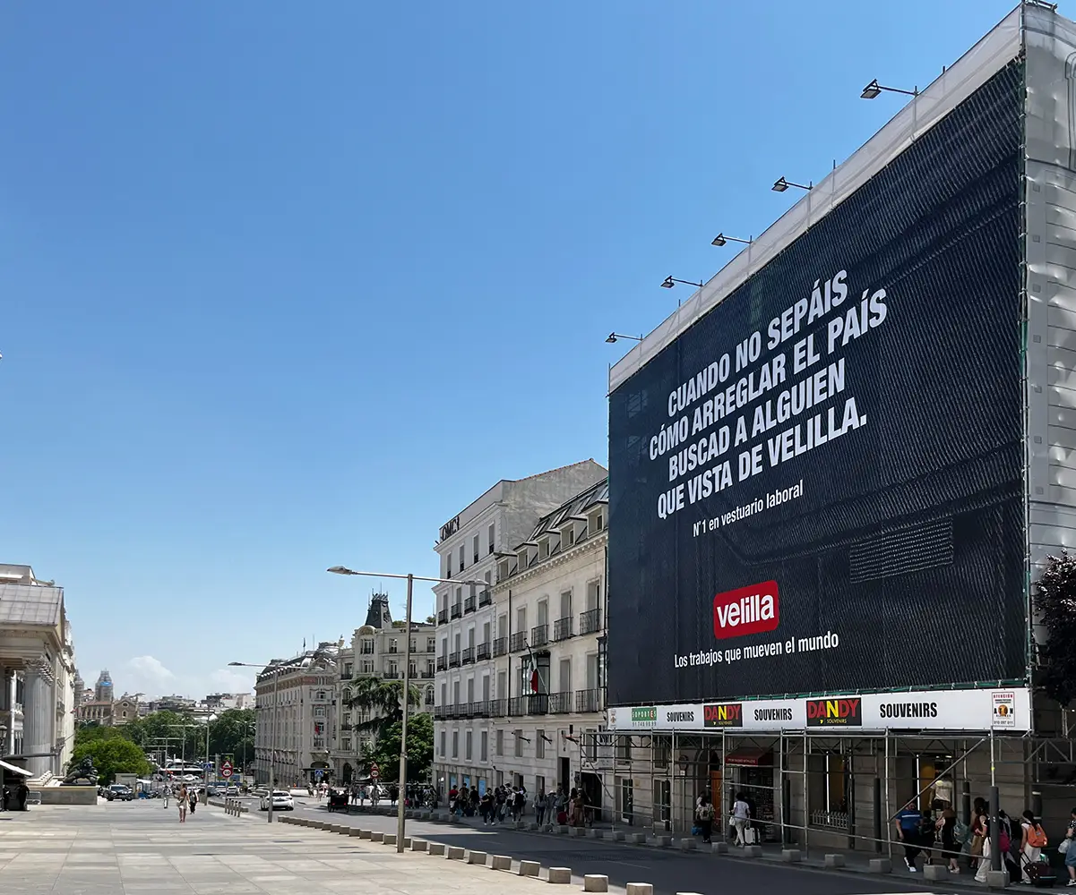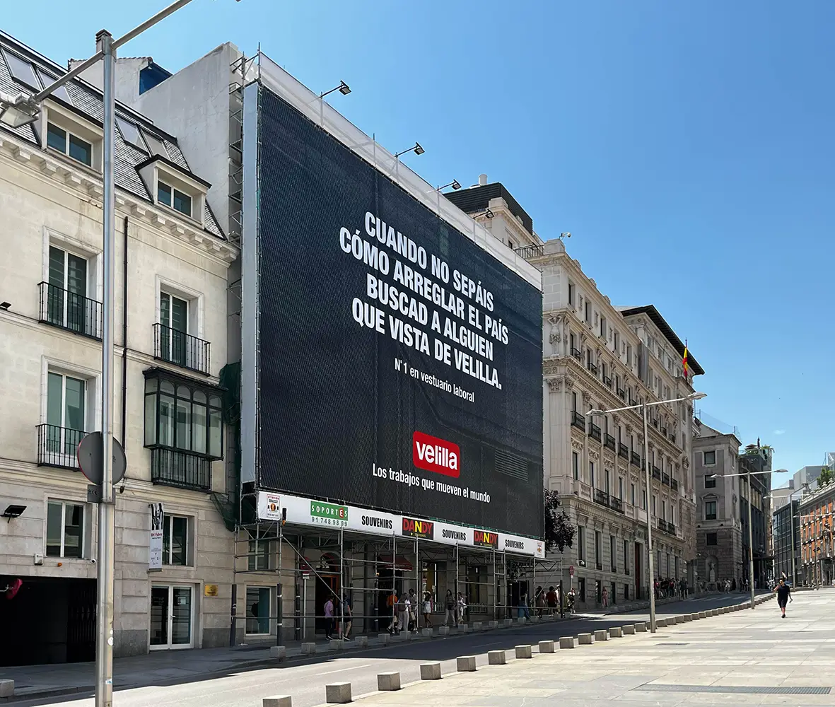 Mientras el Congreso de los Diputados debate soluciones, Velilla ha decidido alzar la voz desde la calle con una propuesta igual de contundente que visual: una lona gigante de más de 20 metros que lanza un mensaje tan claro como provocador: “Cuando no sepáis cómo arreglar el país, buscad a alguien que vista de Velilla”.
