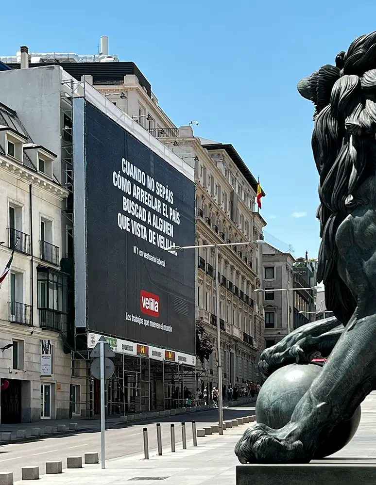 Colocada estratégicamente frente al Congreso, la acción —creada por Sra. Rushmore, en su primera campaña como agencia creativa de la marca— pone el foco en los trabajadores que no salen en los titulares, pero que sostienen el día a día del país. Desde sanitarios hasta operarios, desde cocineros hasta arquitectas de obra, los que se visten cada mañana con un uniforme de trabajo son los que mantienen el país en marcha. Velilla, marca líder en vestuario laboral, ha querido recordarlo a lo grande.