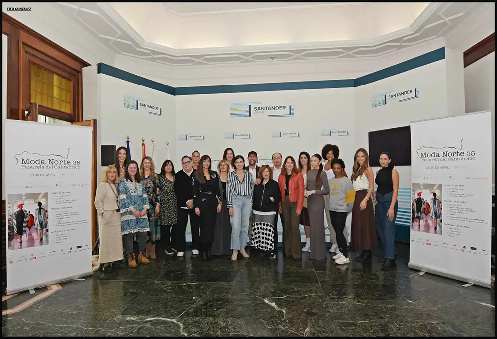 Foto 1: Foto de familia de la presentación de la Pasarela Moda Norte 2025 con la alcaldesa de Santander, Gema Igual, y la directora general de la Sociedad Regional Cántabra de Promoción Turística (CANTUR), Inés Mier.