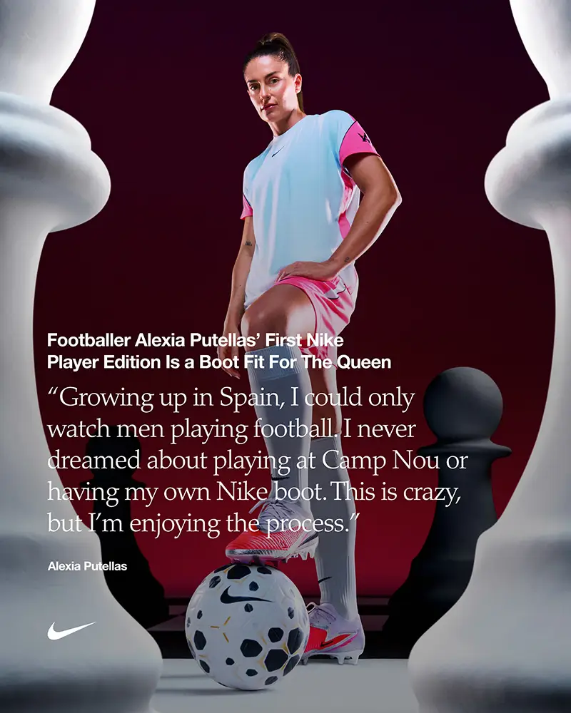 “Al crecer en España, solo podía ver a hombres jugando al fútbol”, recuerda Alexia. “Nunca soñé con jugar en el Camp Nou ni con tener mi propia bota de Nike. Es una locura, pero estoy disfrutando del proceso”.