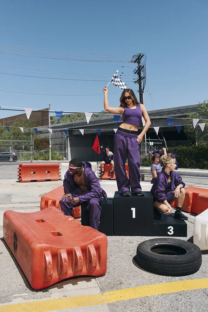 La pieza principal de la colección es un conjunto deportivo en tonos ciruela y negro, que se exhibirá en diferentes eventos y momentos clave de la cultura deportiva global. Su diseño versátil lo convierte en un imprescindible del armario diario, combinando moda y funcionalidad.