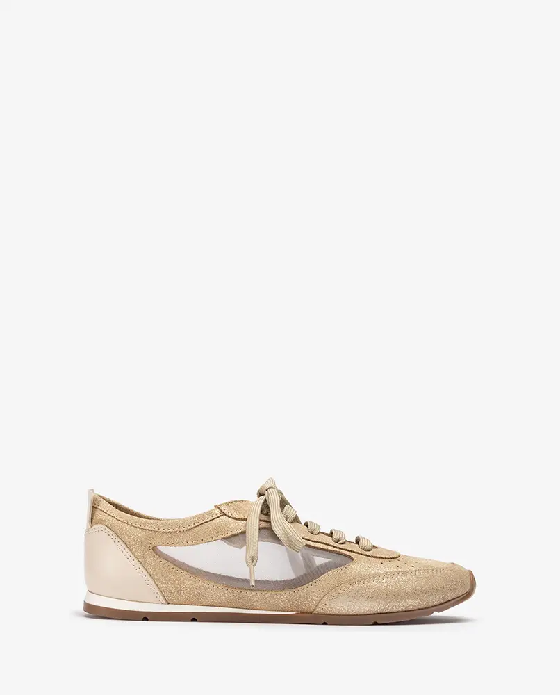 La comodidad deportiva de unas zapatillas se une con la elegancia coqueta de las bailarinas, dando lugar a un calzado versátil, ligero y sofisticado. Con una silueta slim y suela plana, estas zapatillas reinventan el concepto de confort sin renunciar al estilo.