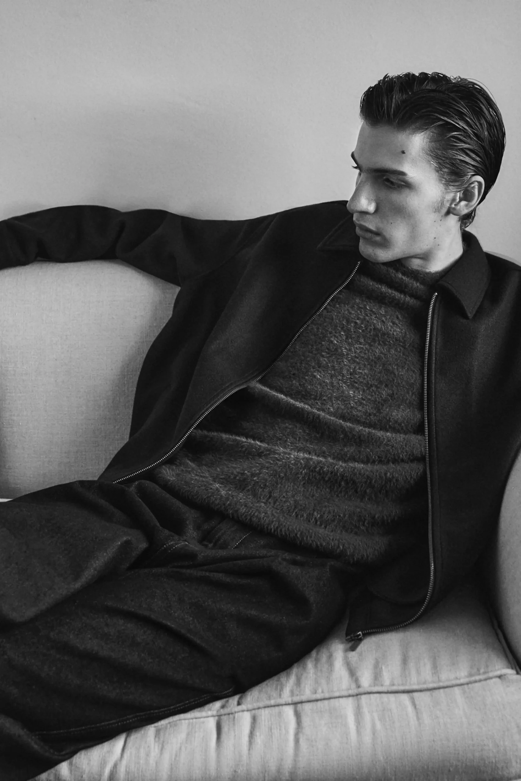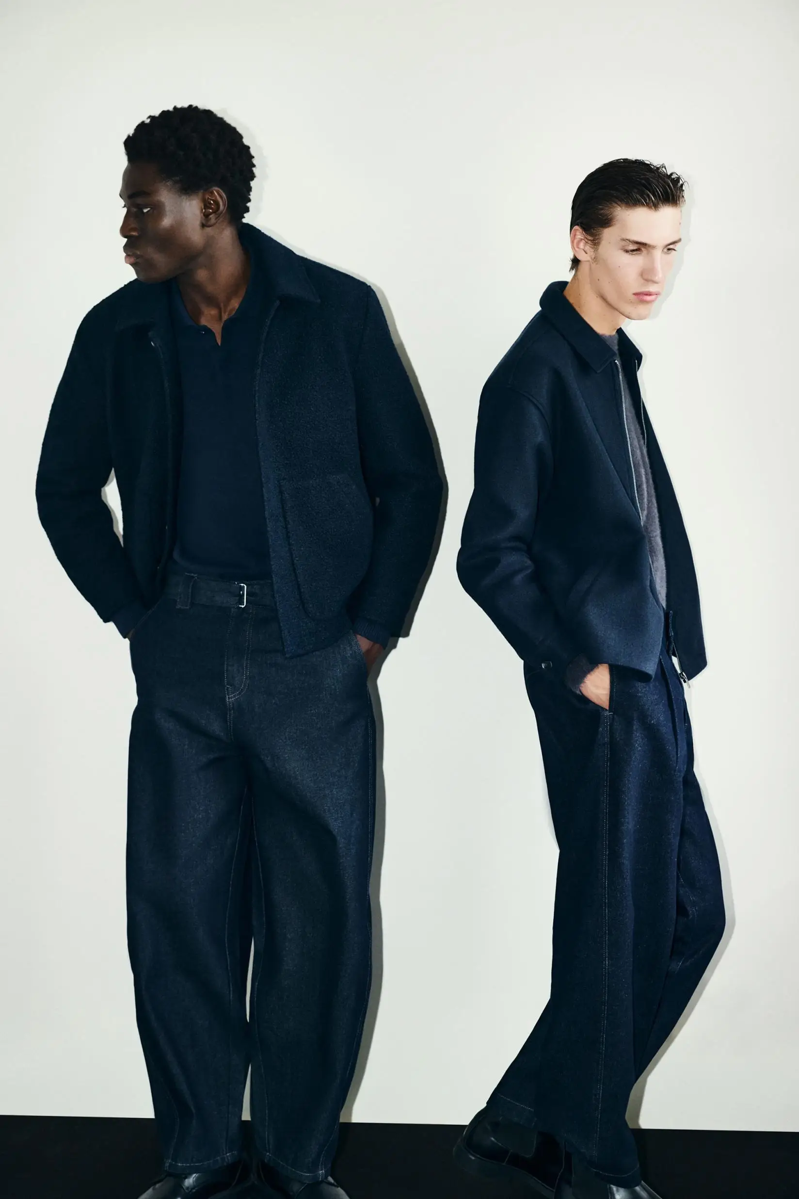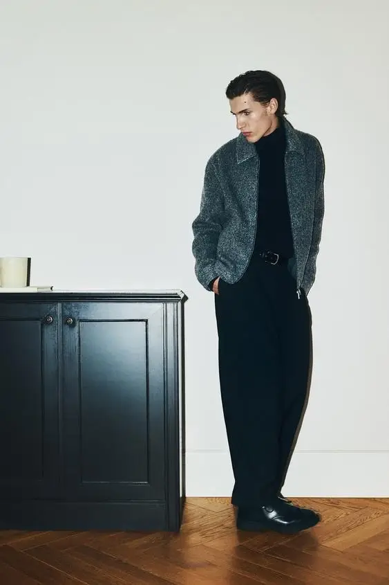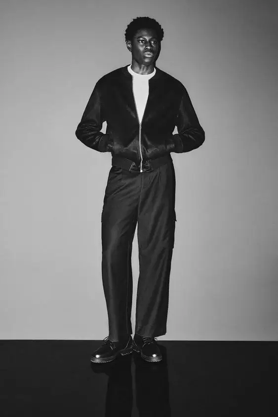Cada pieza está diseñada para aportar funcionalidad y comodidad. Los pantalones chinos, ligeramente holgados y con múltiples bolsillos, se combinan a la perfección con las camisas y blazers. Para capas exteriores, la colección ofrece cazadoras efecto piel con cremallera frontal y bolsillos laterales y abrigos largos de paño de corte ligeramente holgado con cierre de dos botones. La paleta de colores, centrada en grises, marrones y negro, permite coordinar fácilmente todas las prendas y jugar con combinaciones versátiles que se adaptan a cualquier salida nocturna.