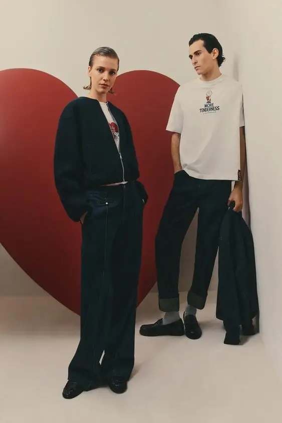 Entre las piezas destacadas de la colección se encuentran camisetas y sudaderas de corte ligeramente holgado o relajado, confeccionadas en algodón o felpa de alta calidad, con estampados y detalles inspirados en grandes iconos musicales y culturales como The Beatles, John Lennon, Whitney Houston, Bob Marley y personajes animados como Snoopy Peanuts™. Cada prenda combina comodidad y estilo, convirtiéndose en el regalo perfecto para celebrar San Valentín con un toque único y original.
