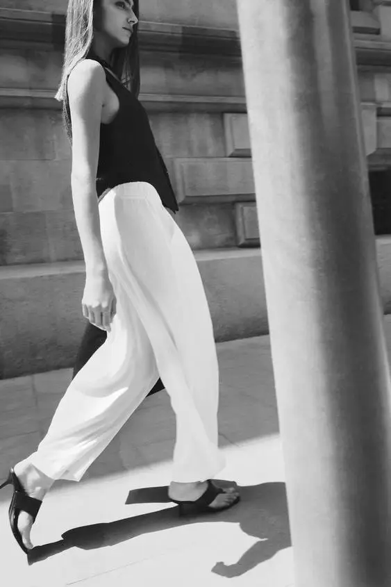 Los tejidos ligeros, rústicos o con textura, muchos con mezcla de lino o algodón, refuerzan esa sensación de movimiento orgánico. Complementan la colección pantalones holgados, ligeramente acampanados o de corte relajado, ideales para un estilo desenfadado pero cuidado. Se suman faldas vaporosas y tops halter ajustados con detalles sutiles, perfectos para combinar entre sí y crear looks atemporales.
