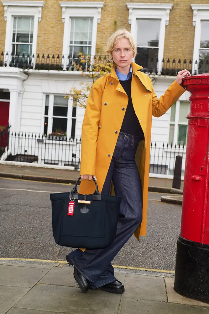 Longchamp y Gloverall han diseñado conjuntamente un nuevo abrigo duffle que resalta sus identidades y su savoir-faire. Confeccionado en paño de lana en los históricos talleres londinenses de Gloverall, está repleto de una artesanía de la más alta calidad. Los amantes de la moda, de París a Londres, disfrutarán envolviéndose en su trenca Longchamp x Gloverall, en azul marino o amarillo nuez moscada, apreciando su corte amplio, cuello alto y generosa capucha, detalles creados especialmente para esta colaboración. Solo ellos sabrán que el forro a rayas ha sustituido al tradicional cuadro escocés, en un discreto guiño a la marinière francesa.