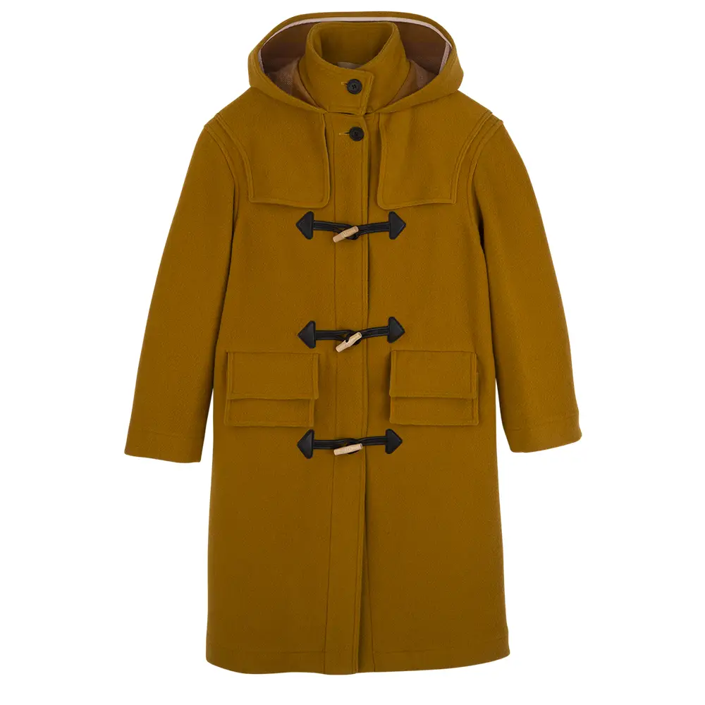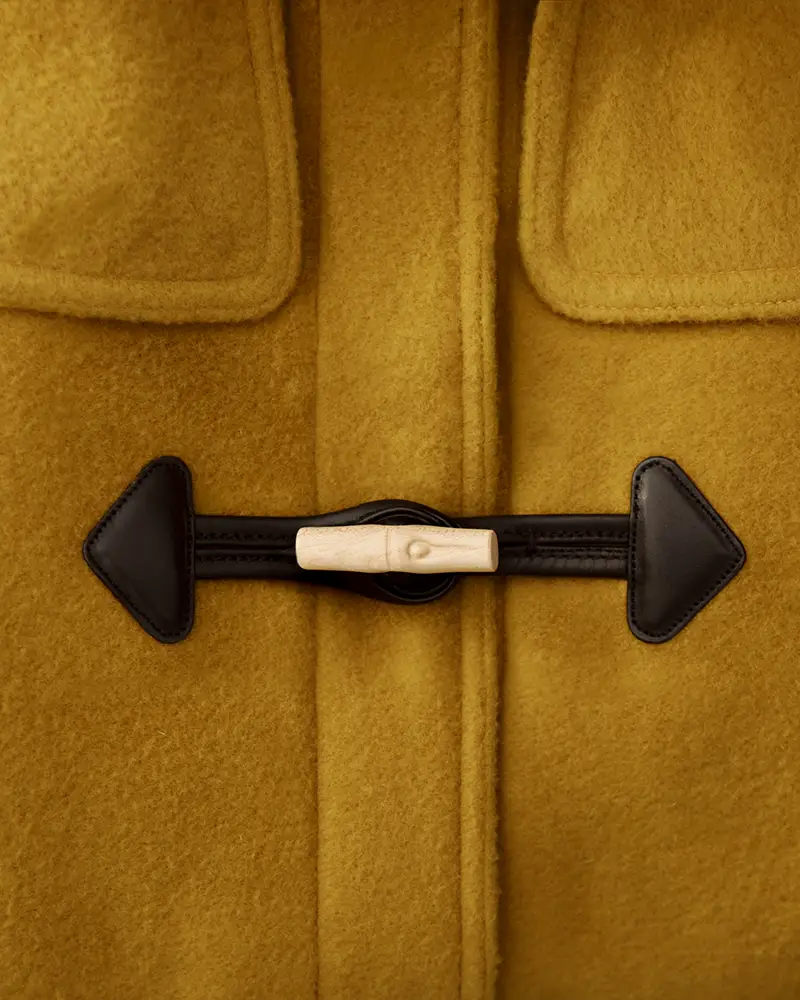 Tradicionalmente asociada a la Royal Navy, el abrigo duffle es instantáneamente reconocible por sus cierres de cuerda y toggle, diseñados en el siglo XIX para permitir que los marineros abotonaran sus abrigos tres cuartos incluso llevando guantes. En 1993, estos cierres emblemáticos, tan sinónimos del estilo británico, inspiraron el característico broche de bambú del icónico bolso Le Roseau de Longchamp. Hoy, este cierre, elaborado en madera de arce, aporta el toque final al abrigo duffle Longchamp x Gloverall, fusionando así herencia y modernidad.