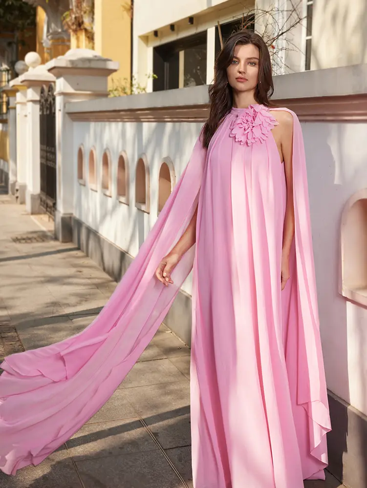Las formas evolucionan con asimetrías en escotes y cortes, mientras que los plisados y las capas añaden movimiento y ligereza: elementos ideales para estilismos con un toque etéreo o celebraciones al aire libre. Para quienes buscan desmarcarse de lo convencional, trajes de chaqueta y los dos piezas coordinados se imponen como la propuesta más actual (y cómoda) para invitadas con personalidad.