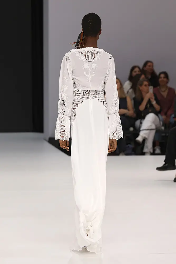 La diseñadora extremeña afincada en Barcelona ha presentado la semana pasada en la Barcelona Bridal Week Amazigh, su nueva colección nupcial inspirada en las culturas nómadas, pensada para las novias de 2026. Marcada por la historia de los pueblos bereberes del norte de África, que la diseñadora conoció y de los que se maravilló en un viaje reciente, la colección celebra la conexión profunda con la tierra, la tradición y la libertad de los pueblos originarios de esta región. Cada prenda está pensada como un homenaje a la belleza atemporal de las culturas trashumantes, que han sabido llevar la elegancia con sencillez, sin renunciar a la sofisticación.