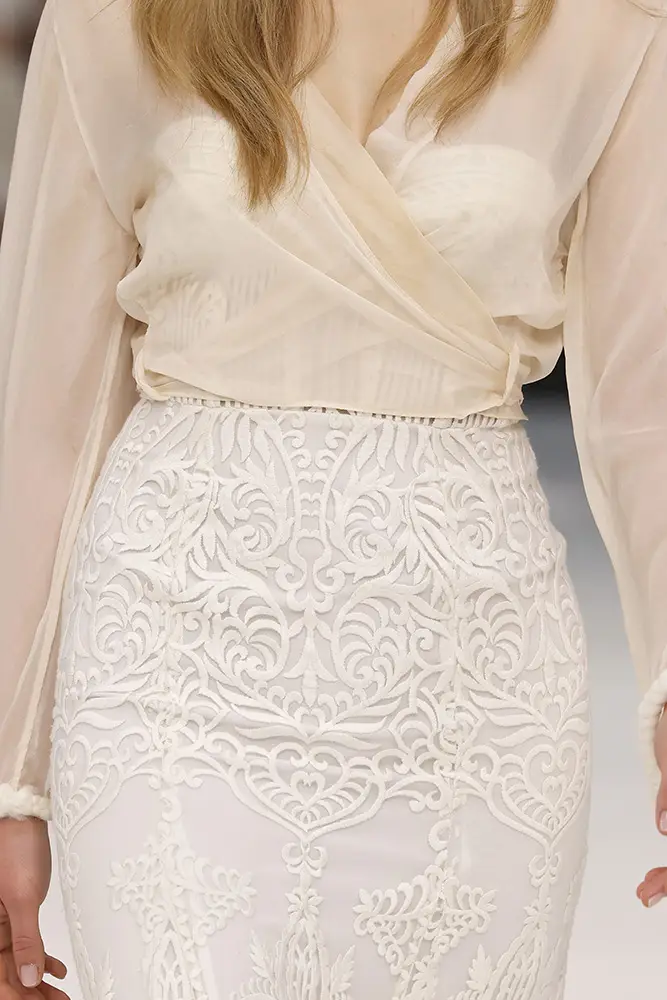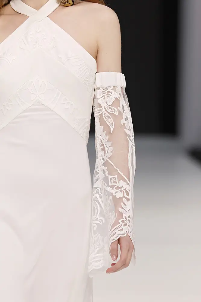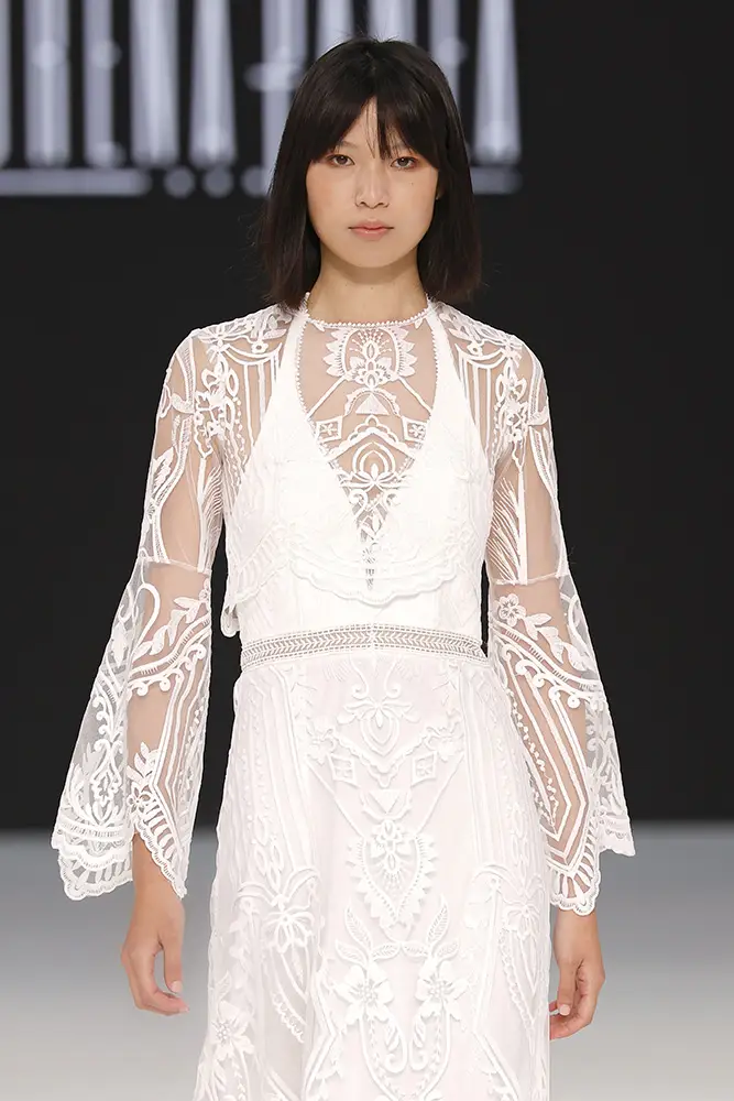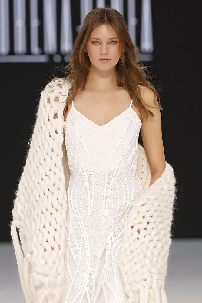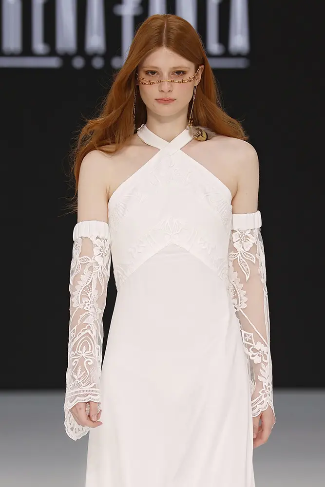 “En Amazigh, cada vestido es una pieza única que fusiona lo antiguo y lo nuevo, lo tradicional y lo contemporáneo, permitiendo que cada novia se sienta parte de una historia que trasciende generaciones y fronteras”, apunta la propia Lorena Panea. Esta visión se ha traducido en escotes pronunciados, encajes, semitransparencias, flecos, tejidos fluidos, mangas ablusadas, escotes halter, punto de lana, mangas de ángel y líneas bohemias. Propuestas perfectas para una novia amante de la artesanía, que abraza lo romántico o lo hippy y que busca piezas que poder reutilizar tras su gran día.