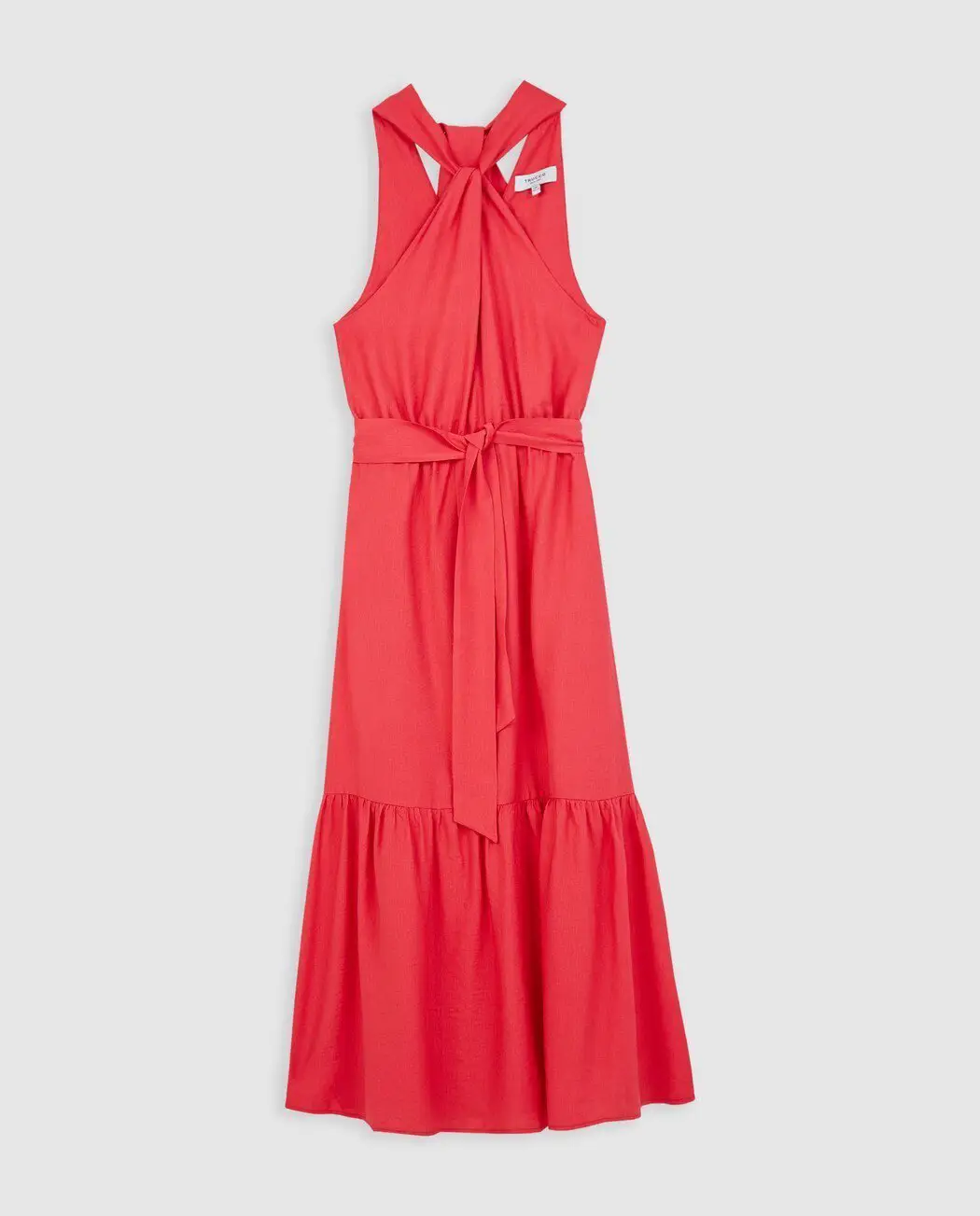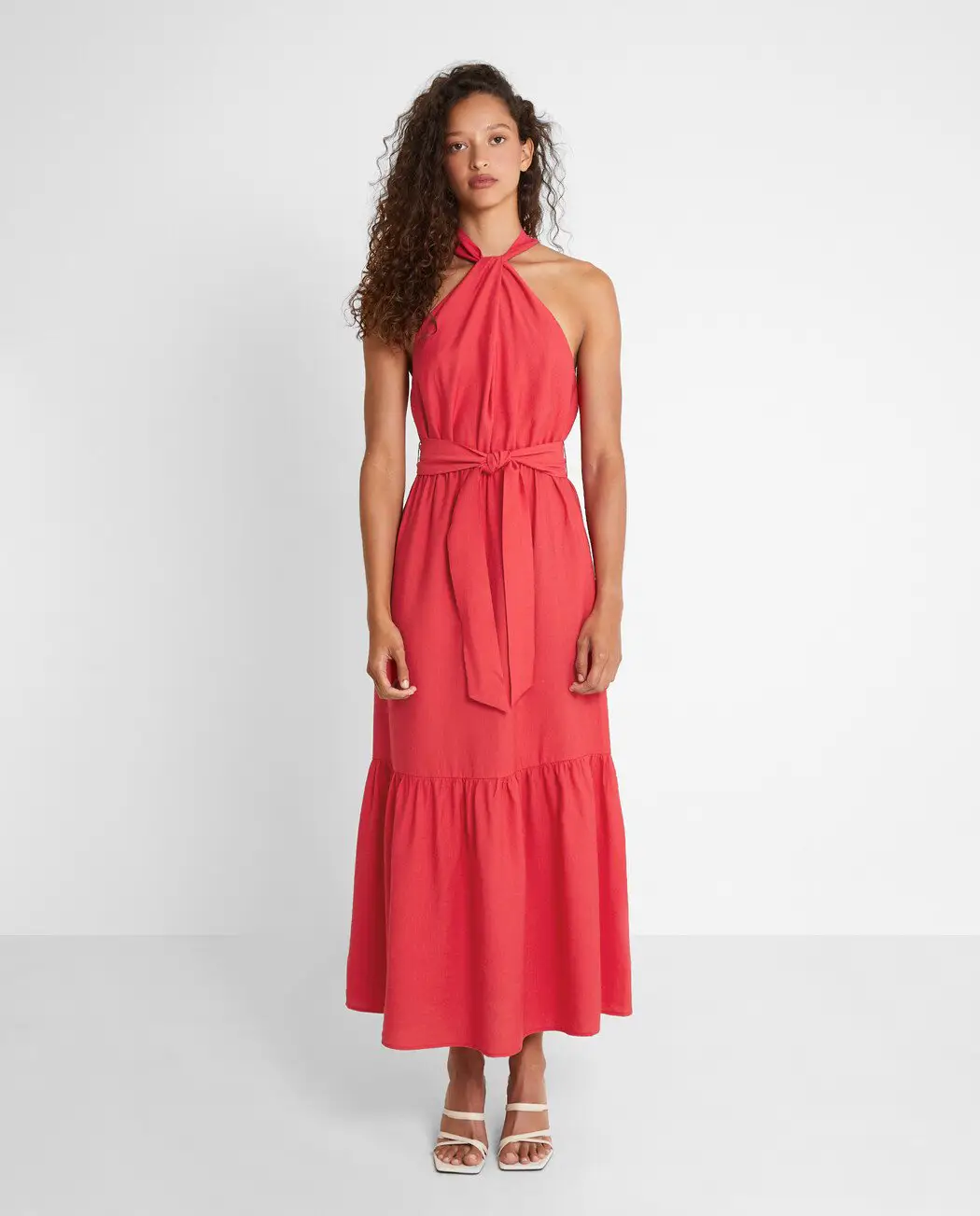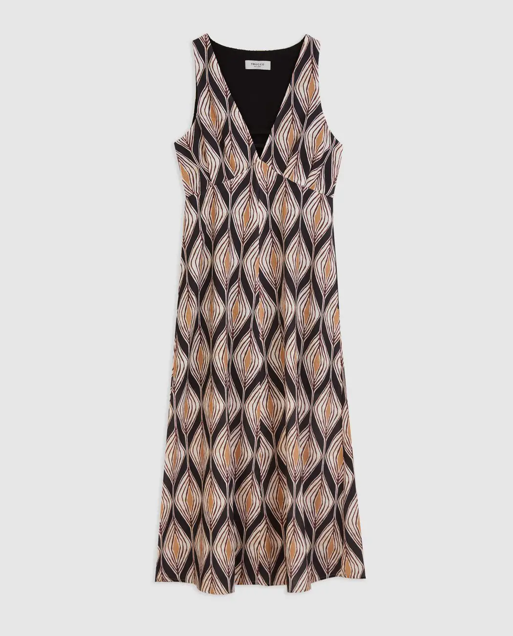 El vestido largo fluido se convierte en el aliado perfecto para una cena especial. Con estampado sutil y caída vaporosa, su silueta estiliza sin esfuerzo y se adapta tanto a unas sandalias planas como a unas de tacón. Ideal para esos momentos especiales en los que quieres sentirte elegante sin complicaciones.