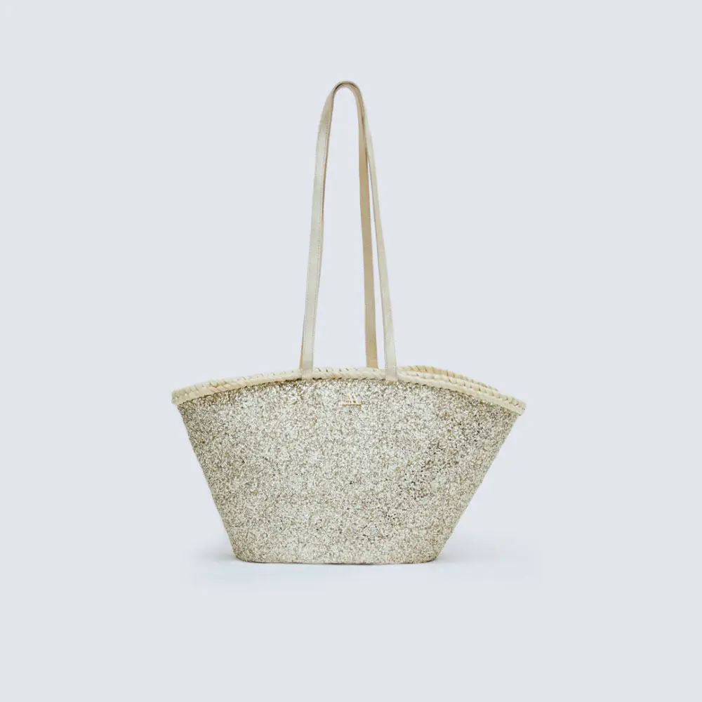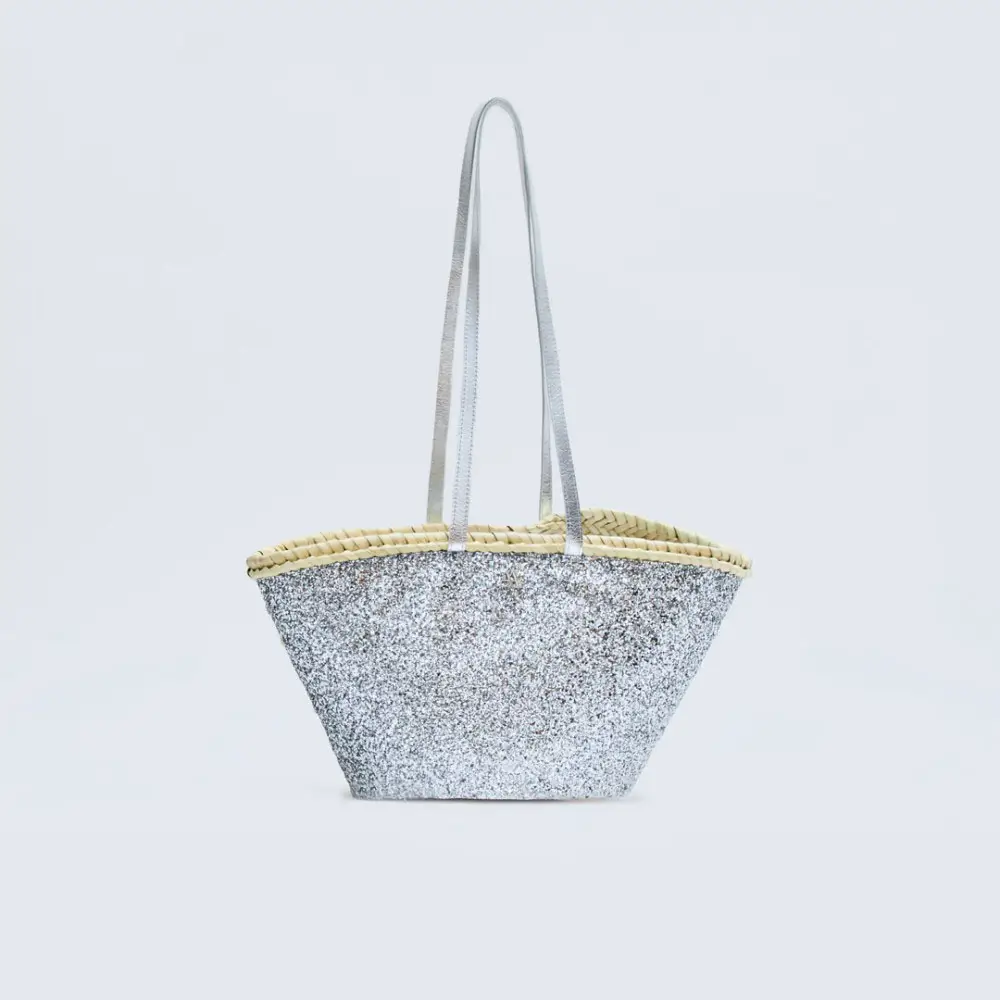 ¿Y para las que quieren un punto de brillo? También hay opciones con hilos lurex o acabados en ‘glitter’, perfectas para trasladar el capazo del día a la noche sin perder ese encanto natural que tanto se lleva.