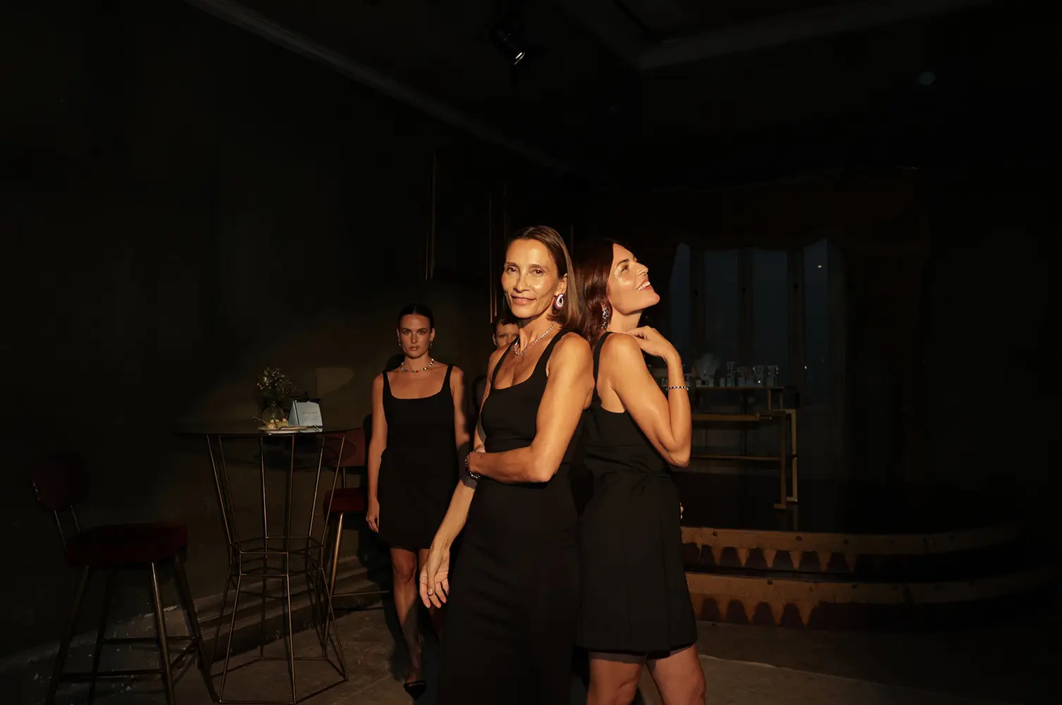 Los asistentes pudieron descubrir las joyas a través de tres actos escénicos simultáneos que se repetían en tres salas consecutivas: una escena íntima frente a espejos, una partida de ajedrez coreografiada y una sesión fotográfica en directo con estética de backstage. Las modelos, como figuras vivas, interpretaron con fuerza y delicadeza una narrativa sin palabras, basada en la mirada, el ritmo corporal y la interacción silenciosa.