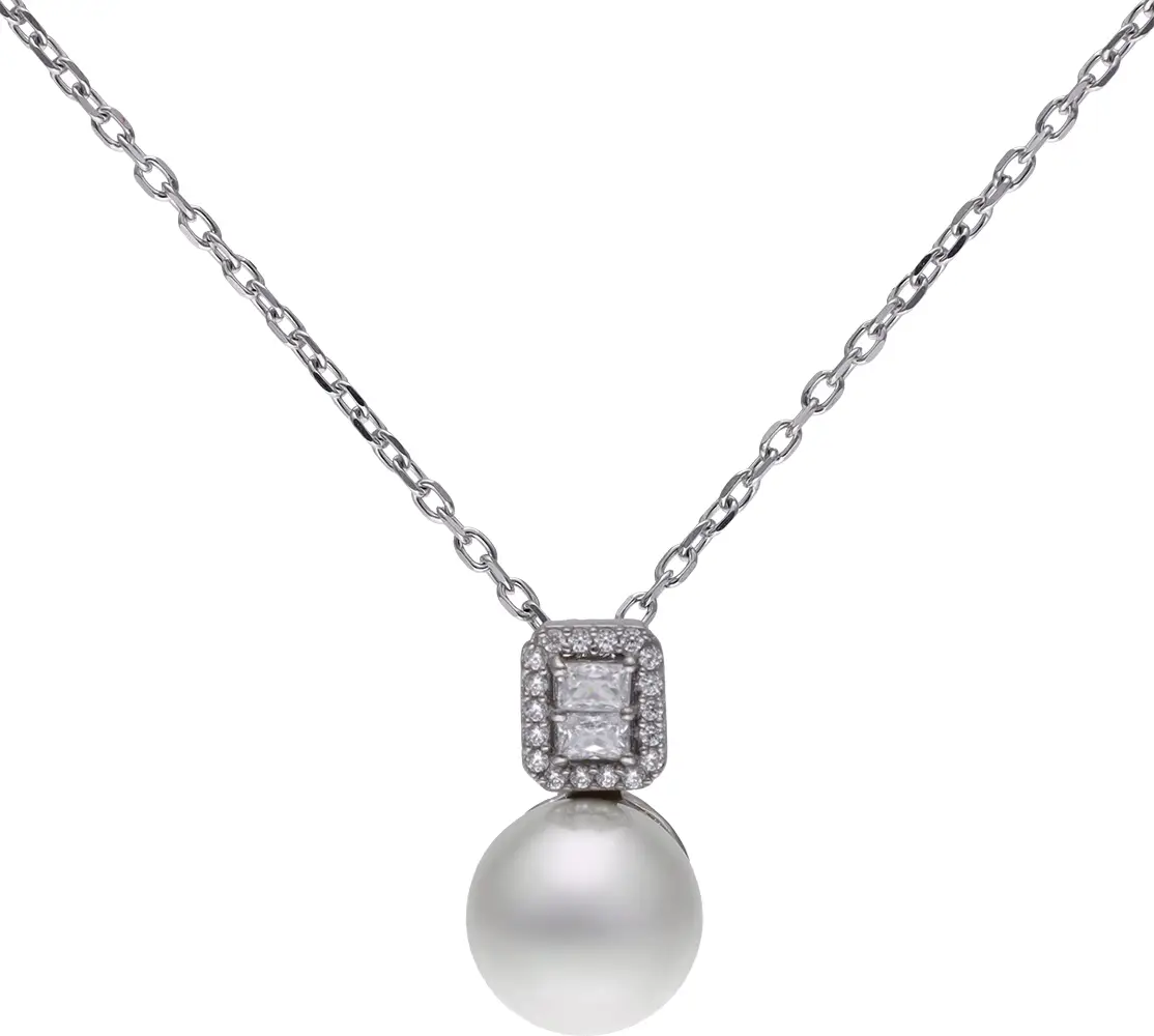 Perlas redondas blancas de 10 mm se suspenden con delicadeza bajo rosetones y marcos cuadrados de circonitas, dando forma a piezas de gran pureza visual. Diseñadas en plata rodiada, cada joya destaca por la limpieza de sus líneas y la meticulosidad de sus acabados, reflejo de un trabajo artesanal cuidado al detalle.