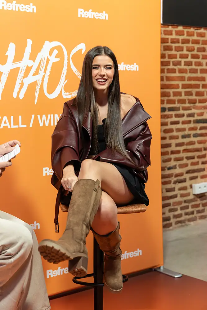 La artista multidisciplinar Mar Lucas acaparó todas las miradas durante la presentación de la nueva colección otoño-invierno de REFRESH. Bajo el lema de temporada “The Perfect Chaos” —una oda a la confianza y energía de una generación que no se deja etiquetar, que se expresa con cada movimiento y que vive sin pedir permiso—, Mar encarna a la perfección esa energía que define a la marca. En la campaña, canaliza el pulso de una generación creativa y segura de sí misma, que entiende la moda como una forma de expresión.