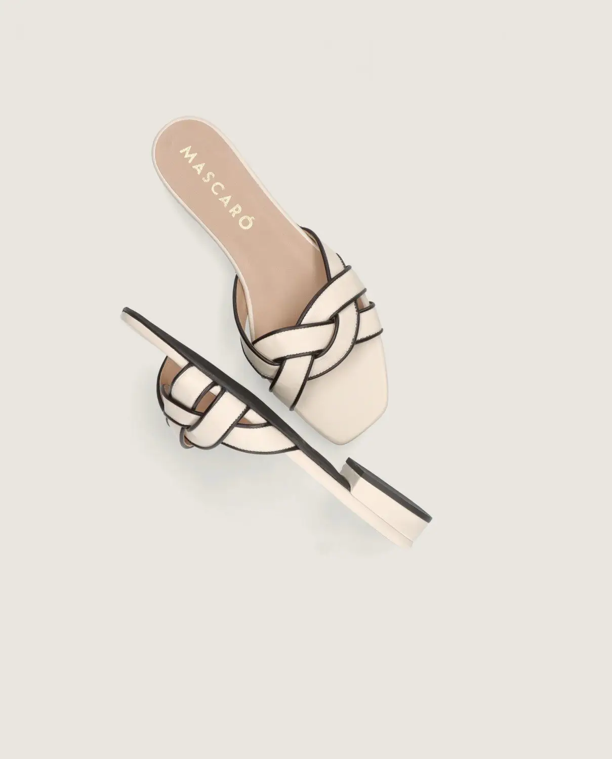 Minimalistas, versátiles y con ese toque chic que eleva cualquier look, las sandalias de pala se han convertido en un imprescindible de la temporada. Mascaró presenta EVA, su modelo estrella para los días de sol, disponible en tres sofisticadas versiones en napa: marrón con ribete blanco, negro con ribete marfil y marfil con ribete negro.