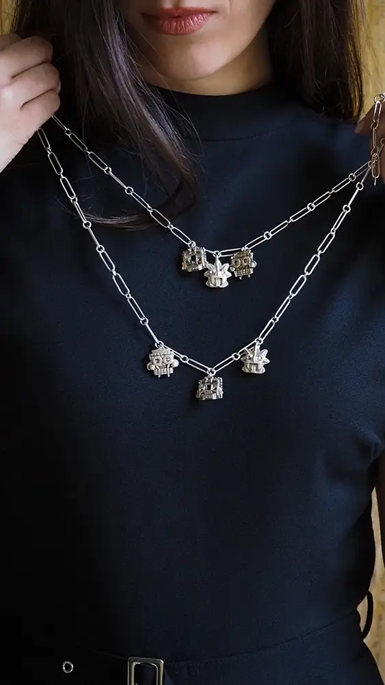 En este contexto, Mina Palmera presenta Amuletos, una colección que da un giro profundo y artístico a la tendencia. Aquí, los dijes no son solo elementos decorativos: son fragmentos de historia, símbolos con alma y esculturas portables que conectan con lo ancestral.