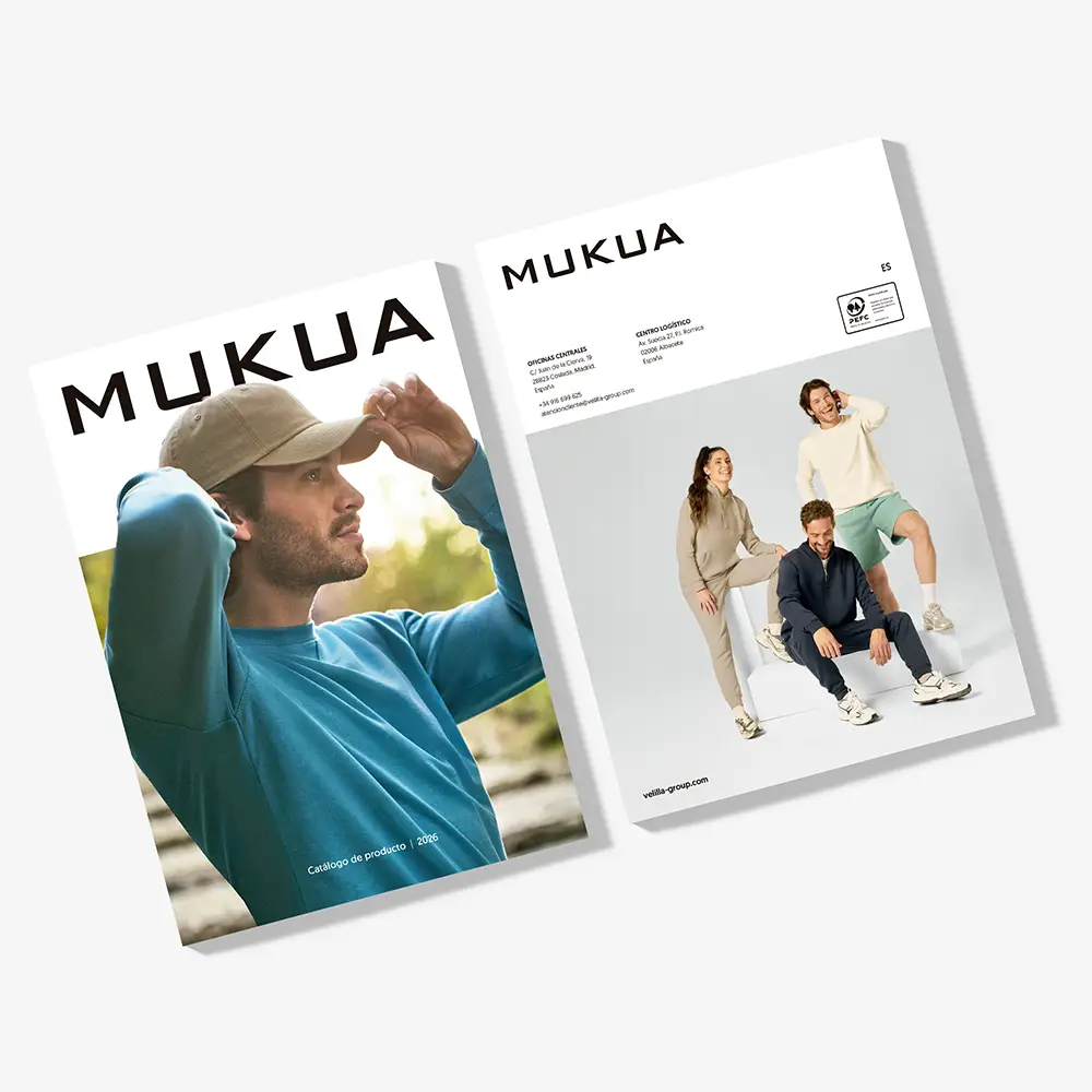 Mukua representa una propuesta textil pensada para el canal promocional, que combina calidad, personalización y agilidad en el servicio. Su catálogo está diseñado para facilitar combinaciones cromáticas coherentes entre prendas —gracias al sistema Colour Link— y ofrece modelos disponibles en múltiples fits, tallas y versiones, tanto para adultos como para niños.