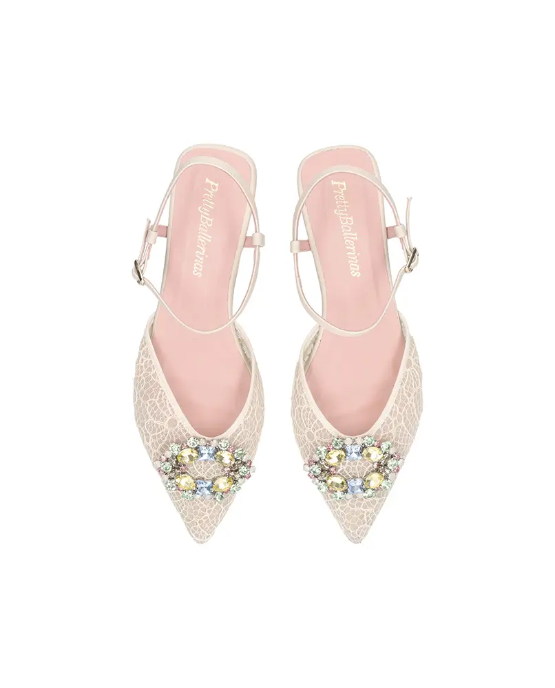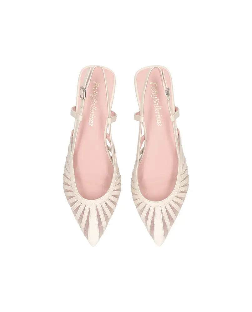 El modelo CLEMENTINE de Pretty Ballerinas destaca por su diseño minimalista coronado por dos simétricos lazos; las bailarinas NICOLE están adornadas con delicadas transparencias florales que realzan su encanto romántico; mientras que los modelos destalonados YVETTE ofrecen una opción de diseño con detalles calados o adornos de pedrería que aportan un toque moderno y glamuroso.