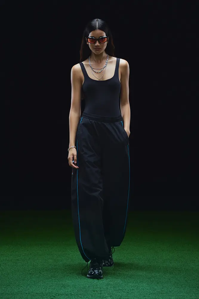 Esta colección revive los elementos gráficos más reconocibles del legado PlayStation como su tipografía original, logotipos y colores de interfaz, reinterpretados desde una mirada contemporánea. La capsula presenta piezas unisex, donde propone un look que trasciende generaciones combinando prendas del streetwear como blazers con jogger más deportivos, chaquetas serigrafiadas con faldas y camisas de popelin contrasta con unos joggers propios de un estilo urbano. La paleta de colores juega con grises, negros y toques vibrantes como el rojo que remiten al lenguaje visual de los videojuegos clásicos.