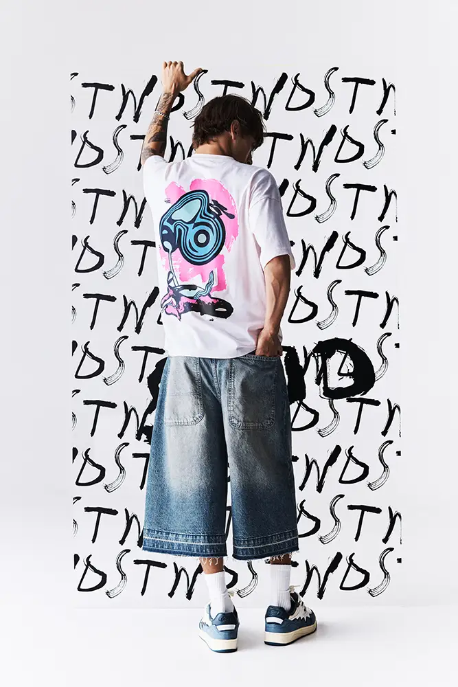 Pull&Bear marca un hito creativo con la cápsula B.A.D. Studio Takeover. La colección incluye prendas denim, accesorios y piezas de diseño circular, con una paleta de colores compuesta por marrones tierra, verdes musgo, violetas lavados y amarillos suaves, que aportan un aire nostálgico y vintage con un giro gráfico provocador.