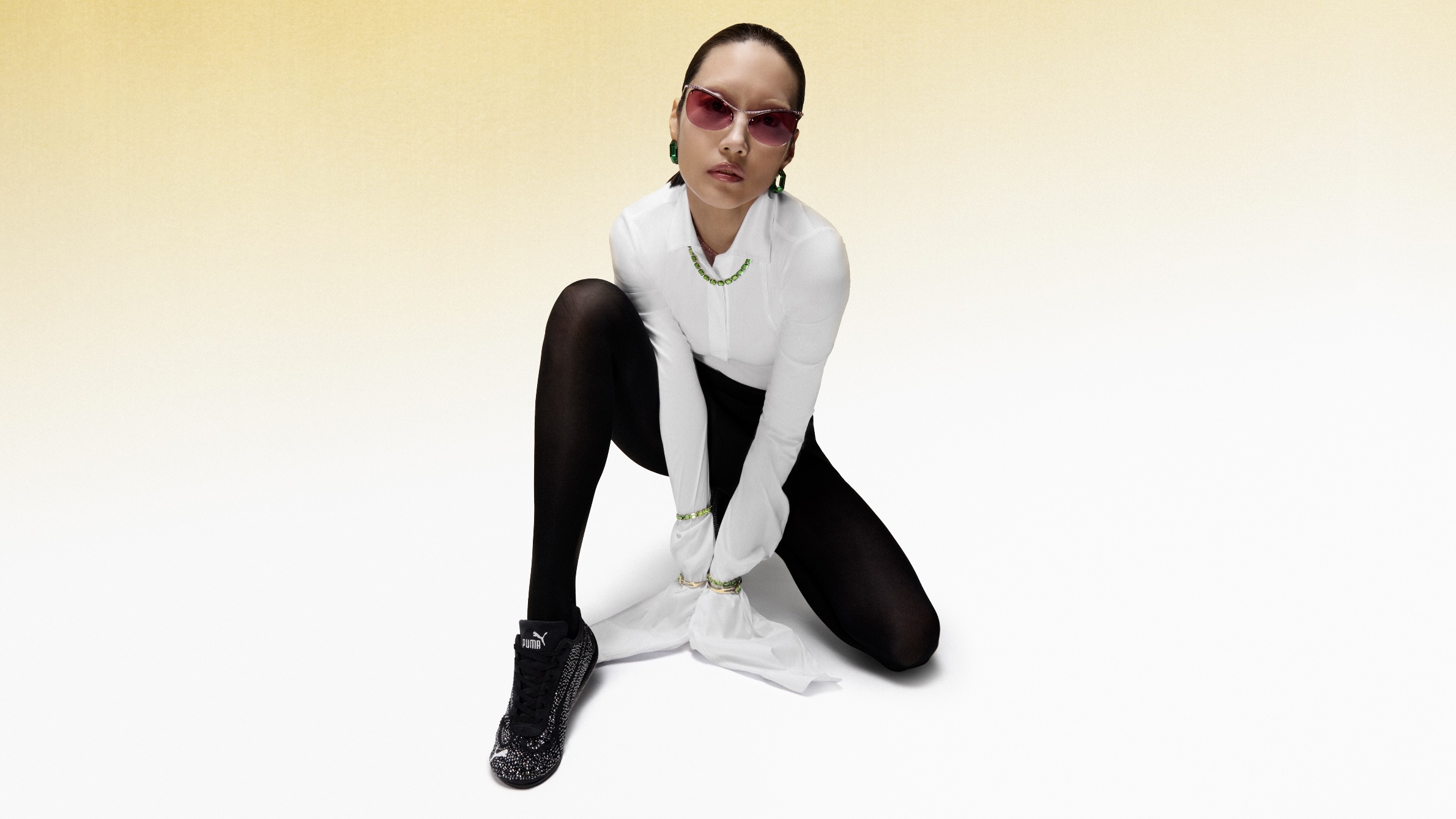 Los radiantes detalles de cristal cubren la silueta y lafranja característica de PUMA queda plasmada por el espacio vacío entre los 5.316 brillantes cristales de Swarovski negros presentes en cuatro tamaños diferentes. El impresionante conjunto de cristales fue aplicado con maestría a esta icónica silueta de 1999 por expertos de la casa austriaca.
