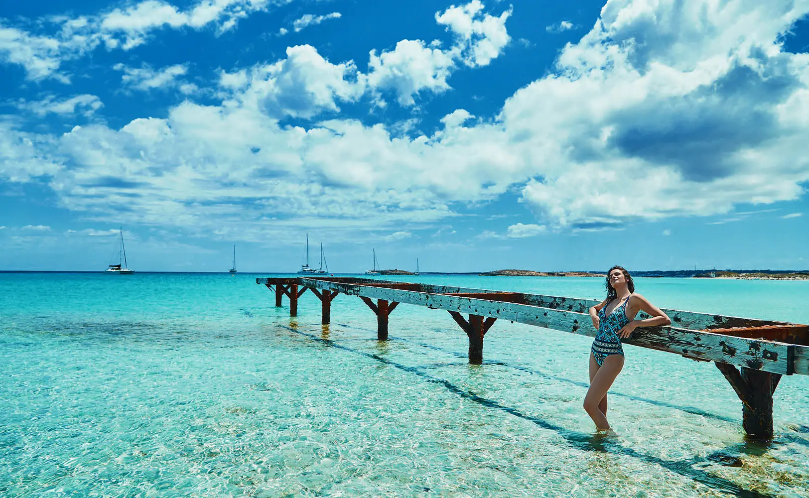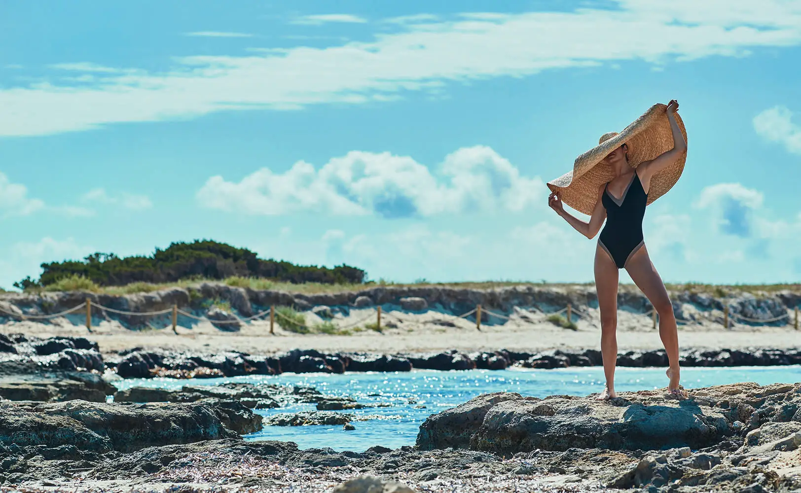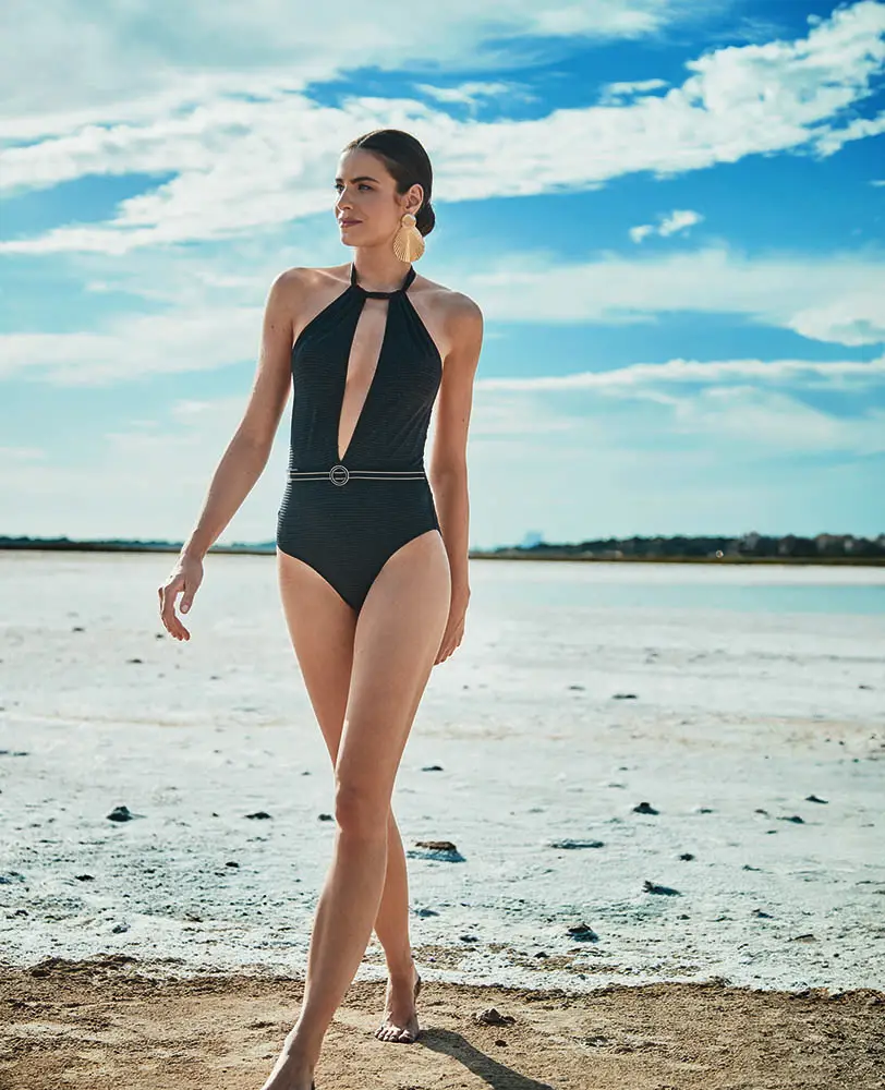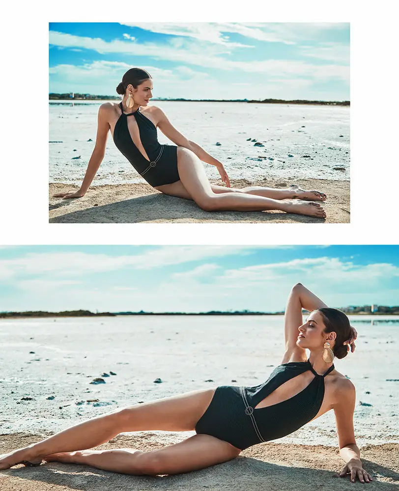 La propuesta nace de un viaje sensorial al paraíso balear: sus aguas cristalinas, los paisajes de arena blanca, la luz serena y una arquitectura de líneas limpias que respira calma. Esa elegancia sin esfuerzo se traduce en bañadores y bikinis que apuestan por la frescura, la sencillez y los detalles sutiles. Los tejidos, texturas y acabados han sido cuidadosamente seleccionados para elevar cada prenda sin renunciar a la comodidad, reflejando una sofisticación relajada y consciente.