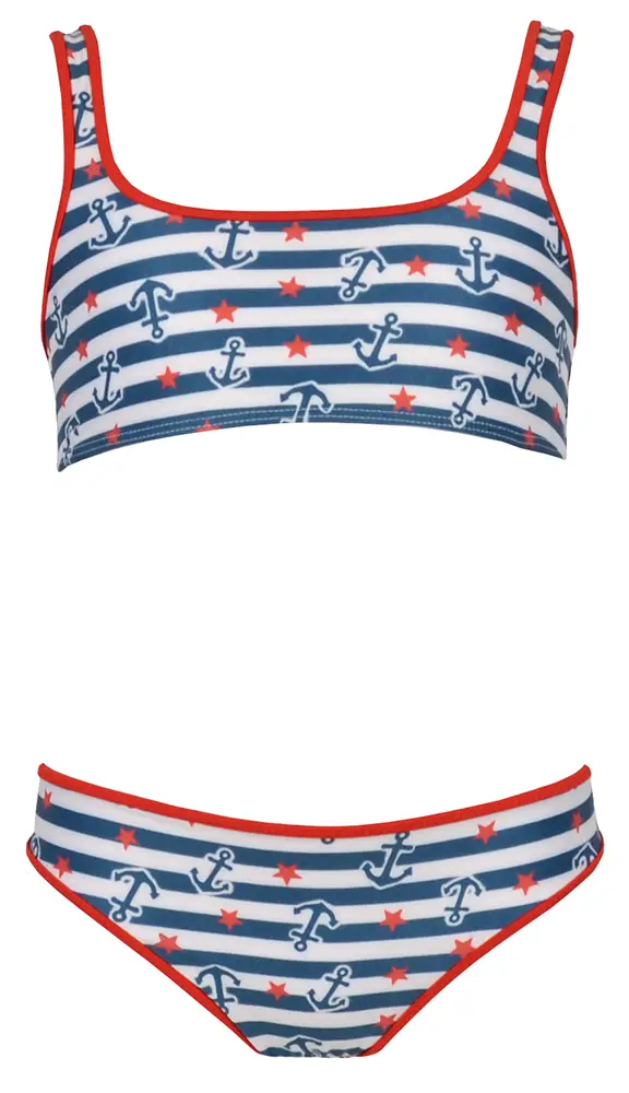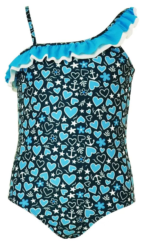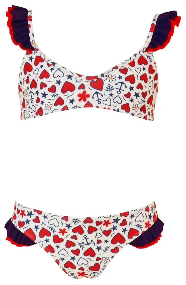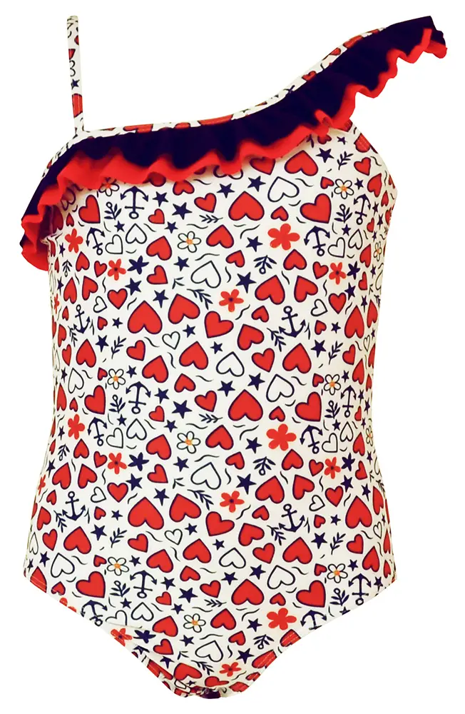 Los cortes asimétricos aportan un toque moderno y actual, mientras que los estampados geométricos y gráficos llenan la colección de personalidad: corazones, anclas, flores y estrellas se combinan en composiciones alegres y llenas de energía.