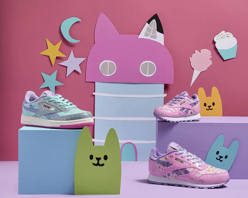 La colección estará disponible a nivel mundial a partir del 29 de mayo de 2025 a las 10:00 a.m. ET, y presenta dos modelos icónicos de Reebok: las Club C Revenge y las Classic Leather, adaptadas para niños en tallas preescolares e infantiles (de $50 a $60 dólares aproximadamente), todas ellas inspiradas en la carismática protagonista Gabby y sus inseparables Gato Amigos.