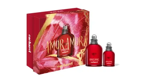 El cofre incluye Amor Amor Eau de Toilette de 100 ml y otro en formato viaje de 30ml, presentados en un estuche rojo vibrante que refleja toda la energía del amor sin límites.