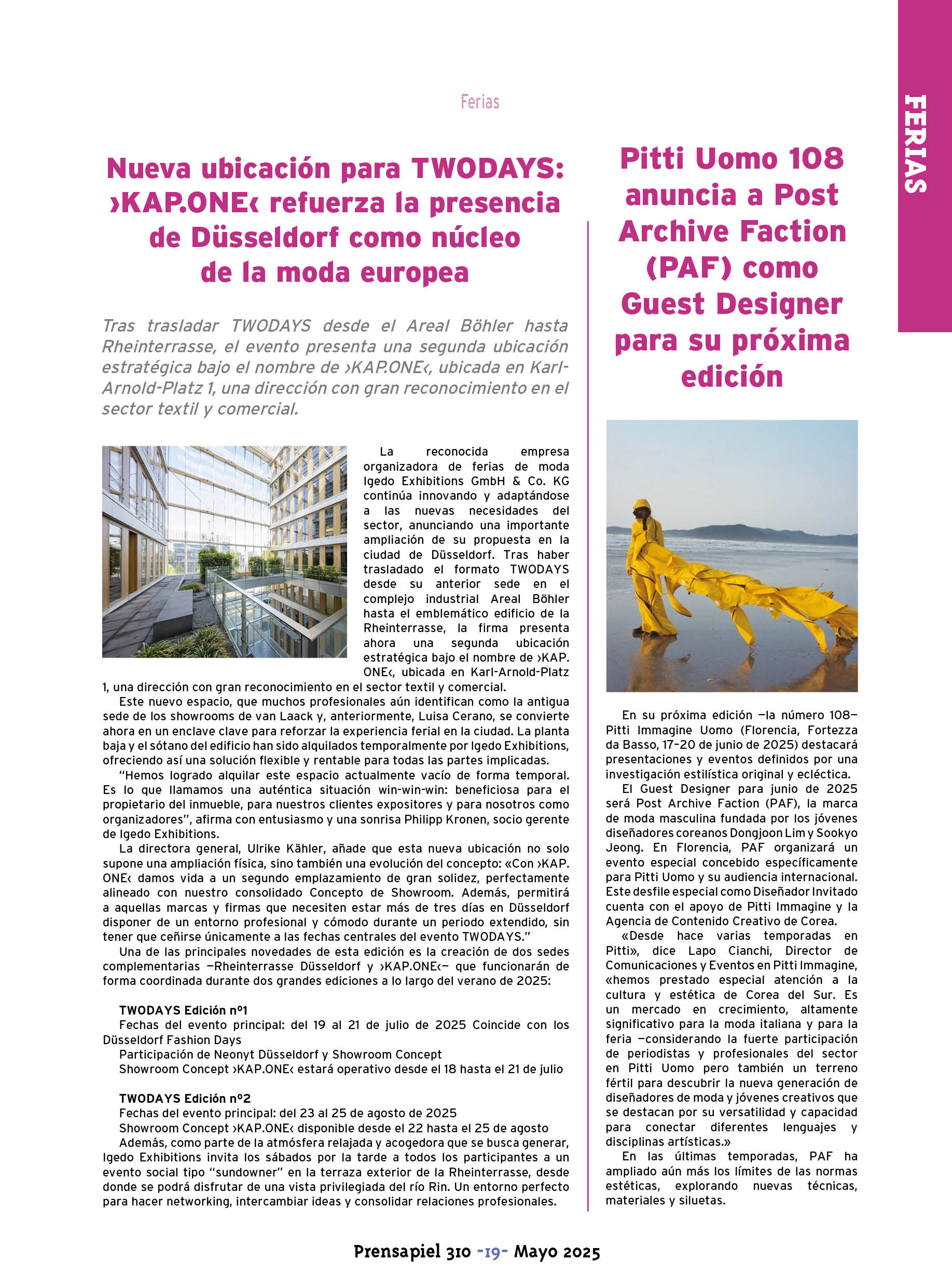 - Nueva ubicación para TWODAYS: ›KAP.ONE‹ refuerza la presencia de Düsseldorf como núcleo de la moda europea.
