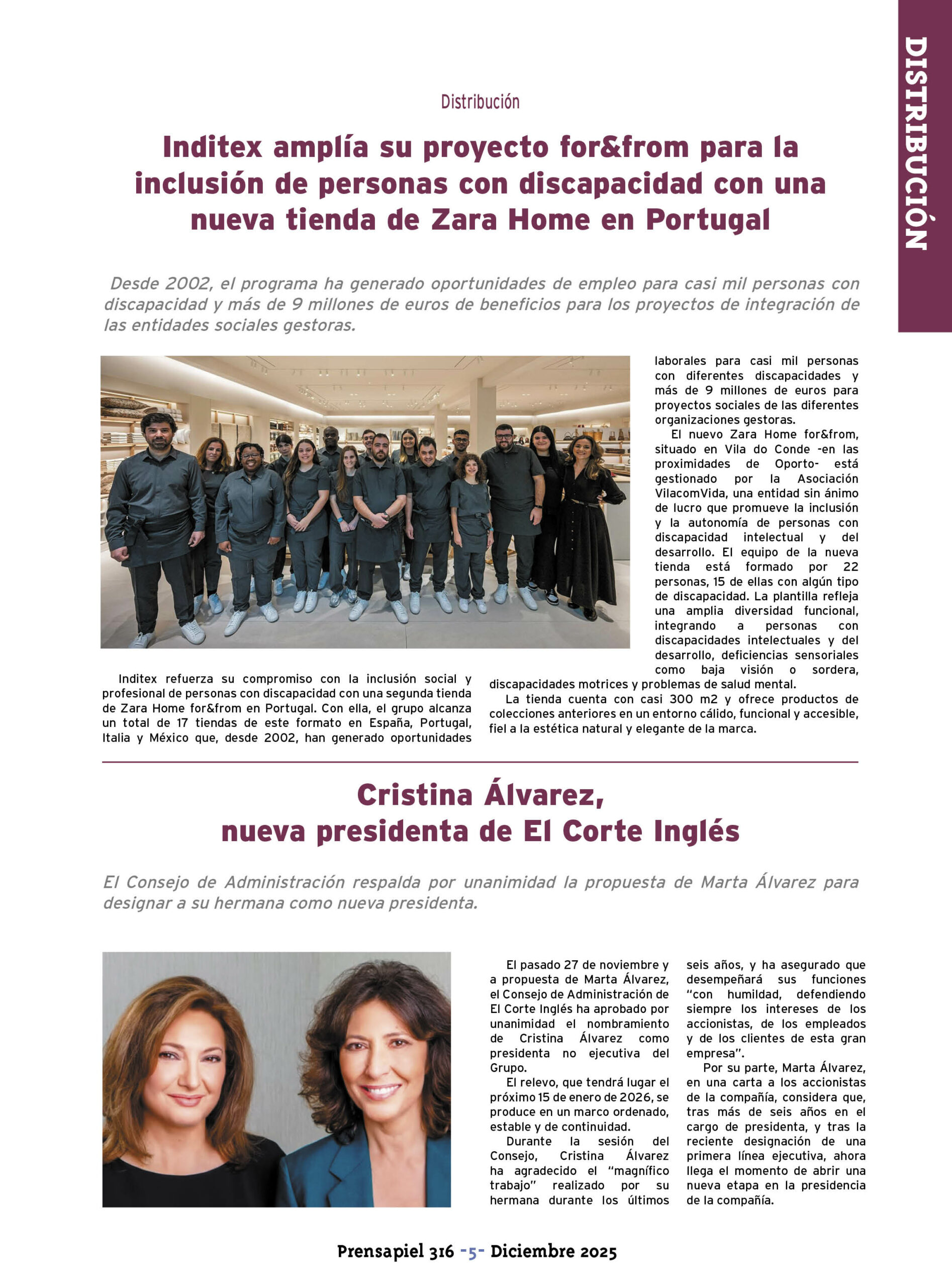 - Inditex amplía su proyecto for&from para la inclusión de personas con discapacidad con una nueva tienda de Zara Home en Portugal.
