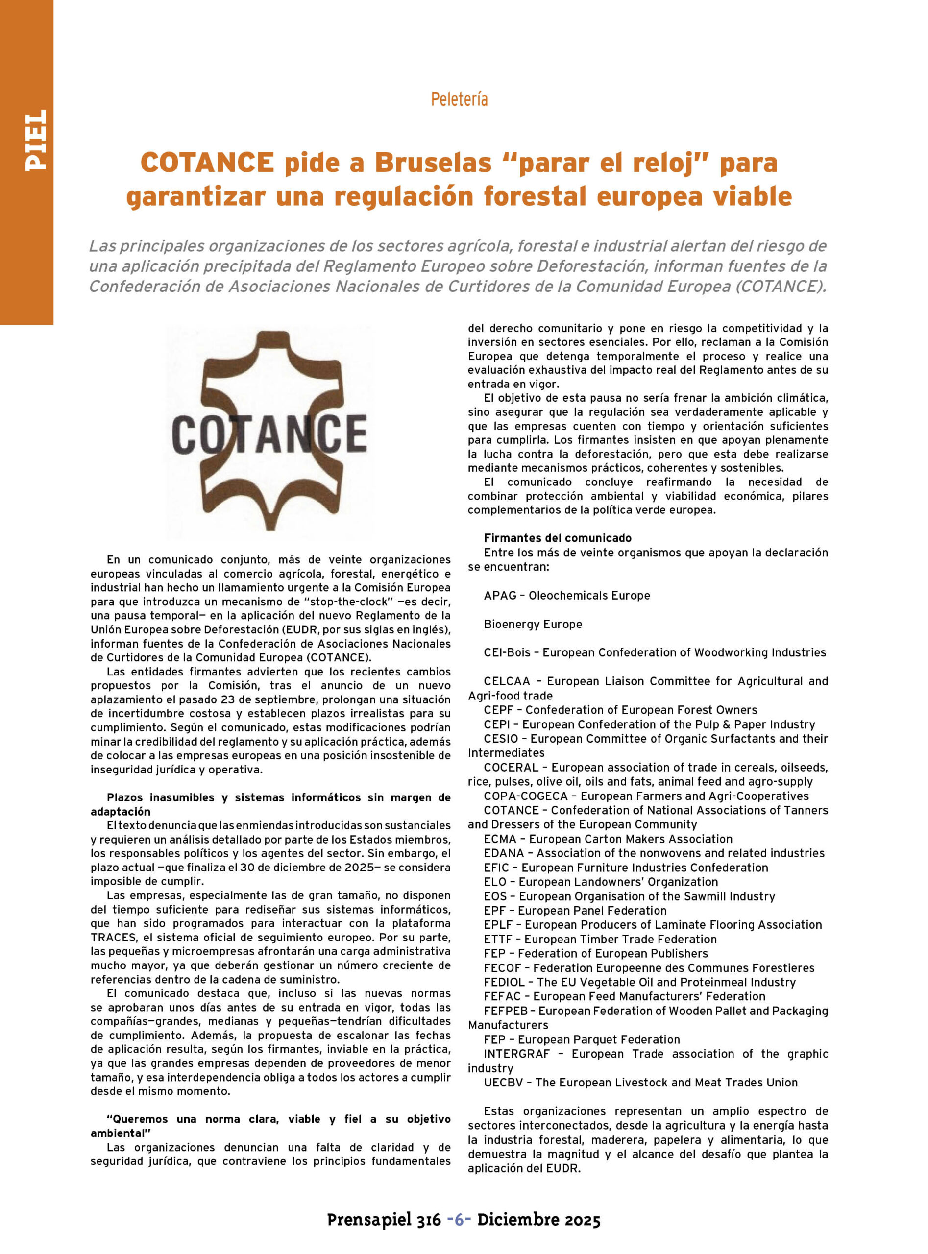 - COTANCE pide a Bruselas «parar el reloj» para garantizar una regulación forestal europea viable.
