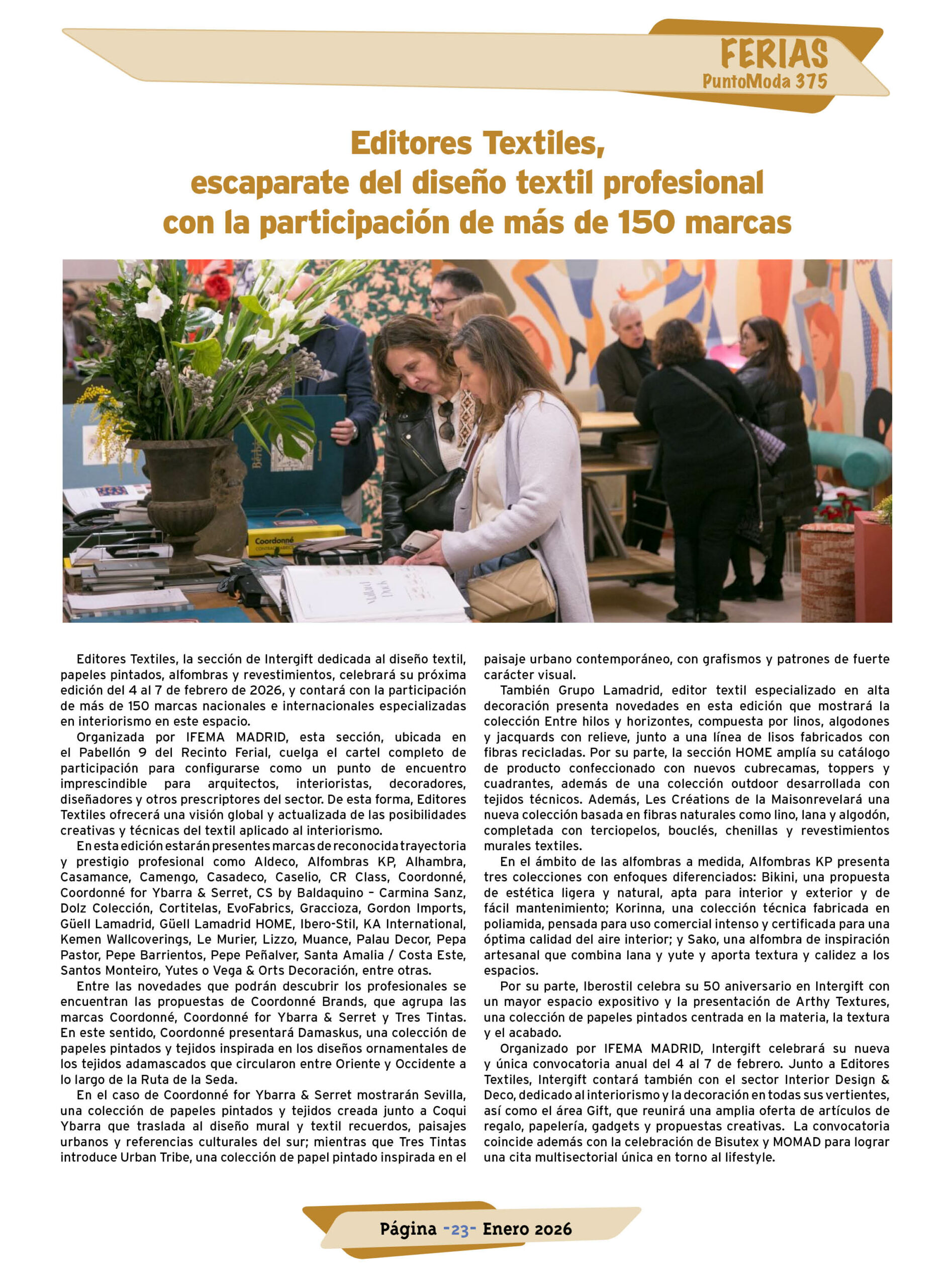 - Editores Textiles, escaparate del diseño textil profesional con la participación de más de 150 marcas.